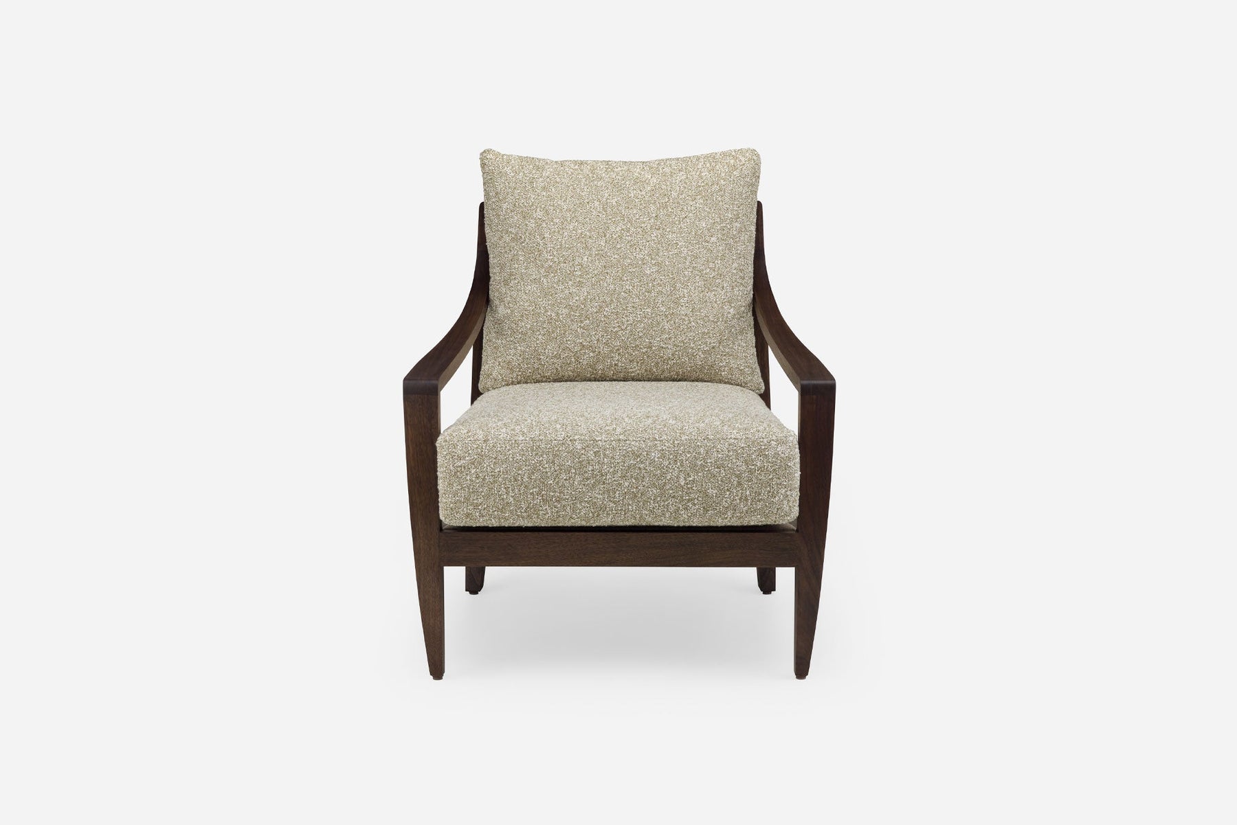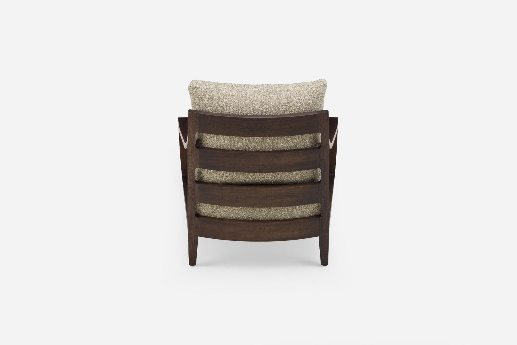 Reflecting attention to detail, this chair has a solid hardwood frame with fluid curves, supporting a deep soft seat and luxurious cushion on the backrest. With its beautiful solid wood back, it works well in the centre of a room.