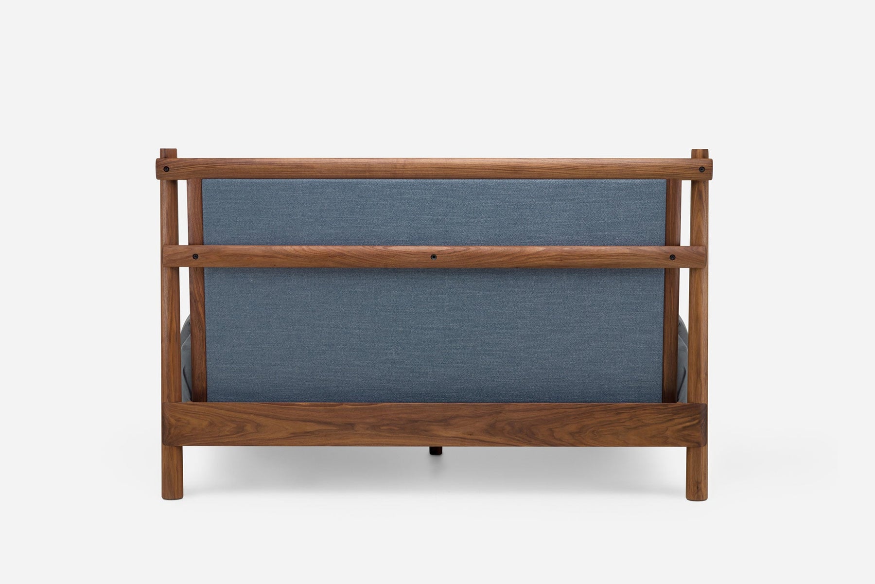 Twenty-Five Bed is a meticulously detailed bed with a solid wood frame and an upholstered headboard. Inspired by the work of Carlo Scarpa, Charlotte Perriand and Josef Frank, Twenty-Five Bed reflects a meticulous attention to detail and haptic qualities. The solid wood frame features scooped sections and smooth, curved edges, enhancing the inherent beauty and tactility of the material. With its slender frame and relatively small footprint, this bed is suitable for compact spaces, while its headboard, softened with upholstery and beautiful from all sides, makes it ideal for use in the centre of a room.