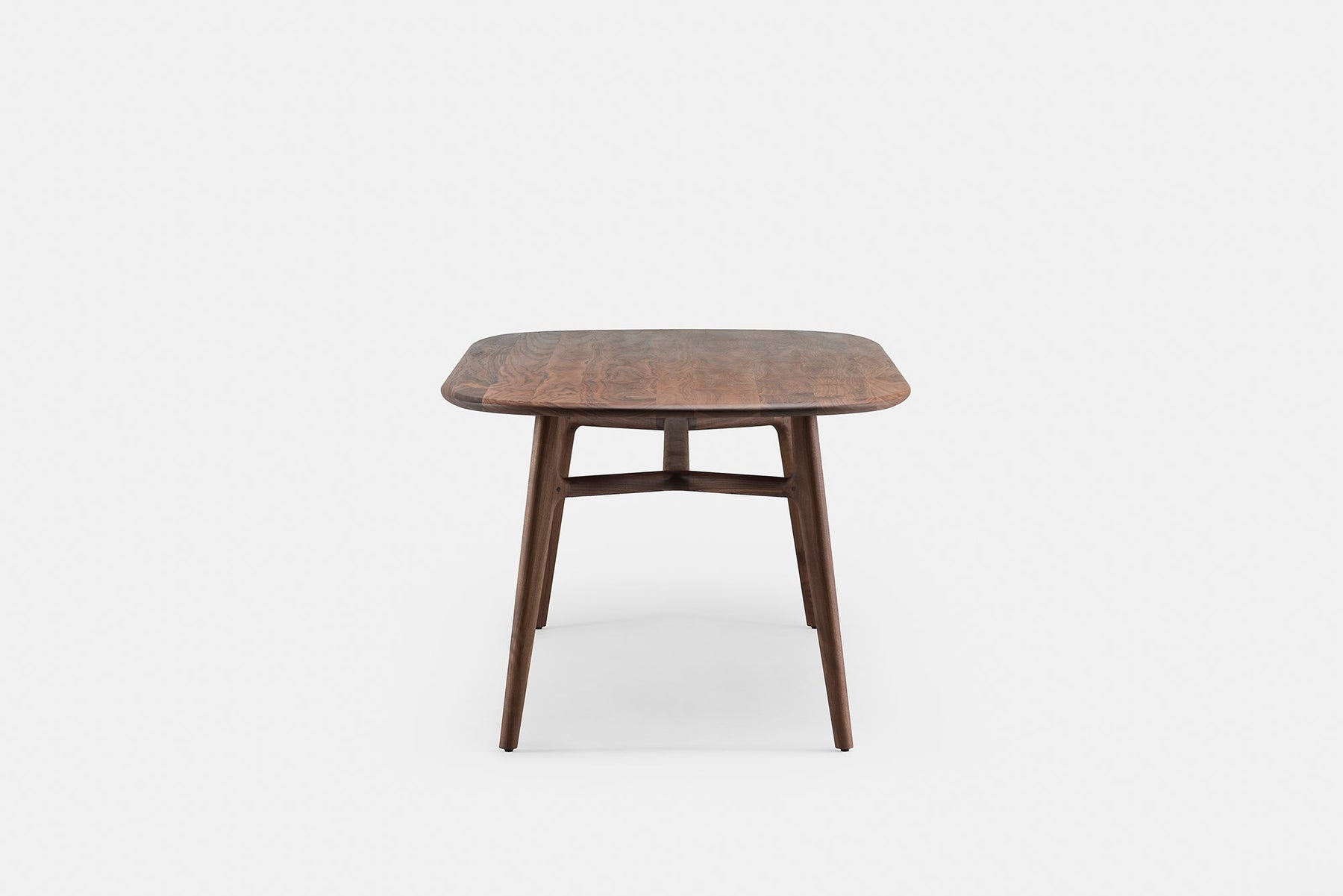 Solo Table is designed to support family life around the table, bringing people together. The tripod leg frames symbolise this familial connection. Made from generous planks of premium solid wood, the tabletop showcases the natural colour and grain of the timber.