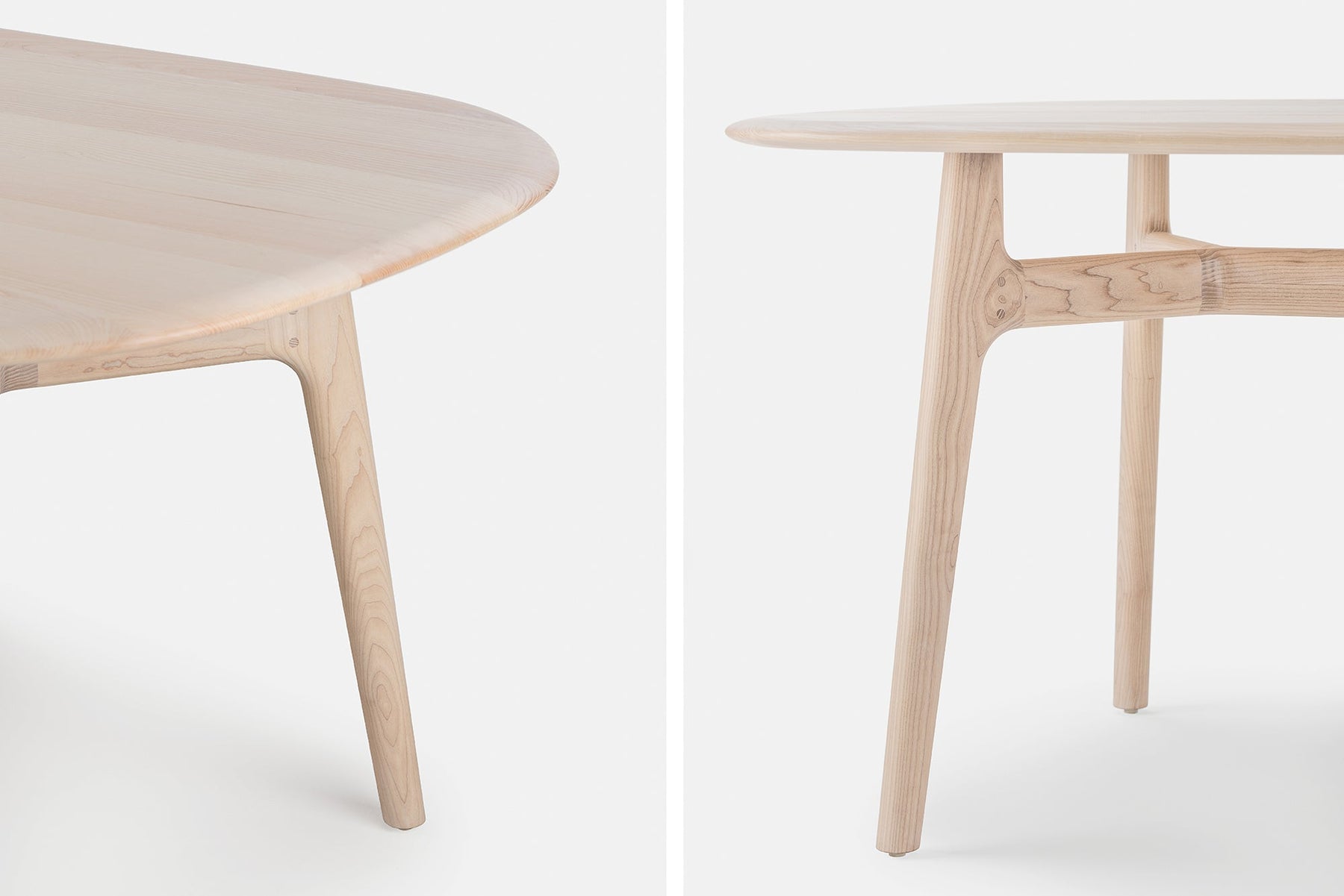 Timber is sustainable solid wood from North America or Europe, offering long-term repairability of the surface. Natural colour and grain variations in every plank make each piece an individual. Traditional wood joinery bonded with wood glue ensures structural integrity. All finishes are non-toxic and applied by hand, sprayed or rubbed.