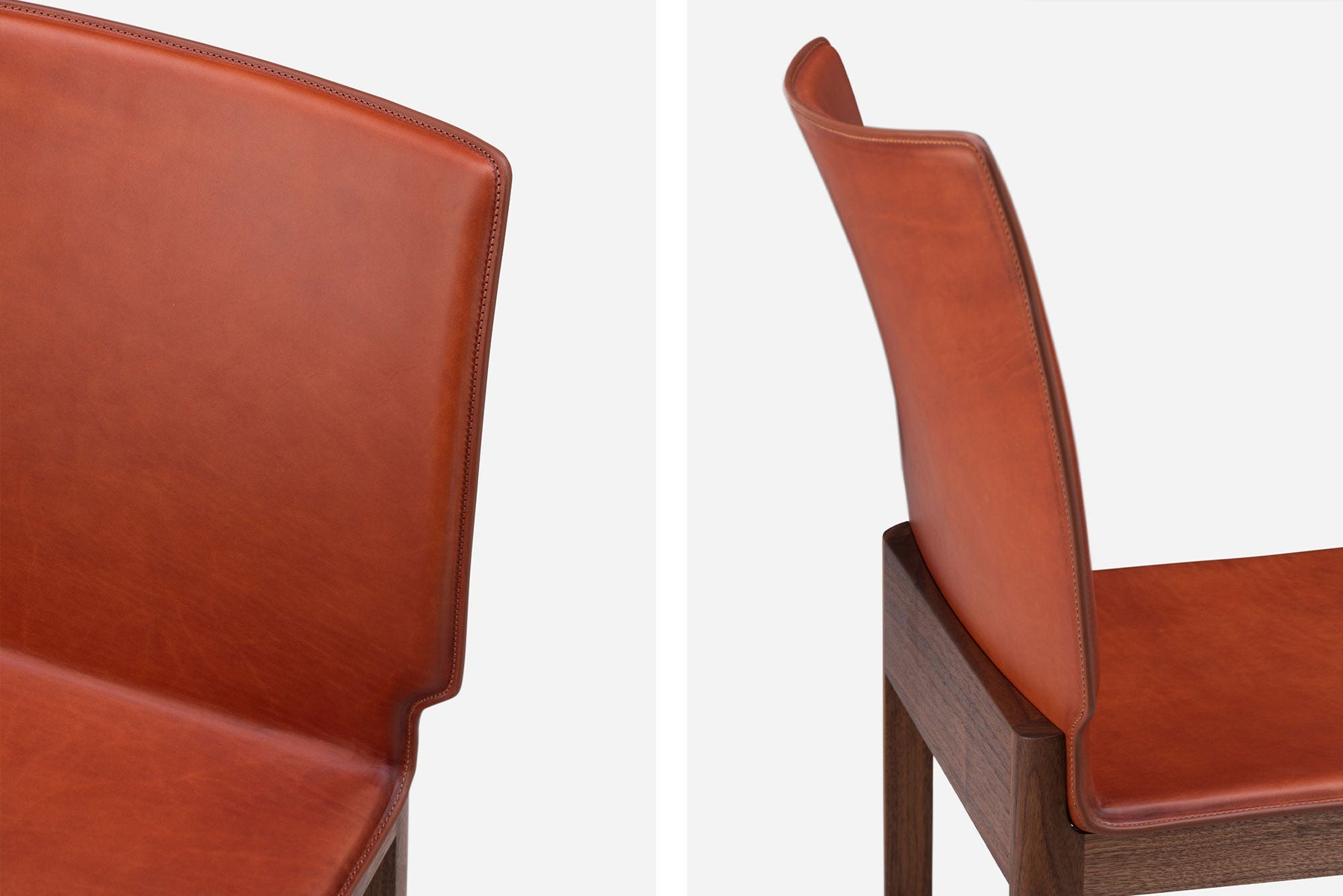 Available in black walnut, white oak, or ash in a range of finishes and saddle leather in a choice of colours. See menus below for further material information.