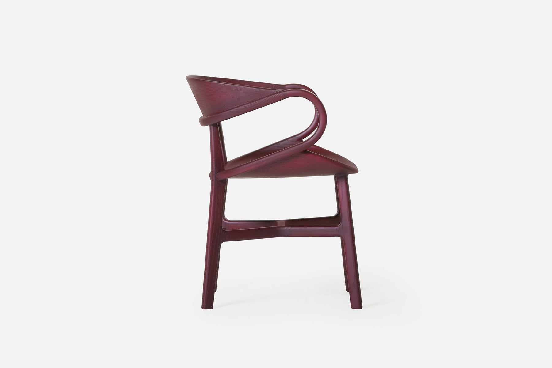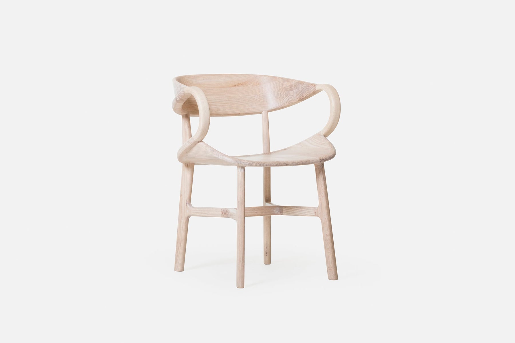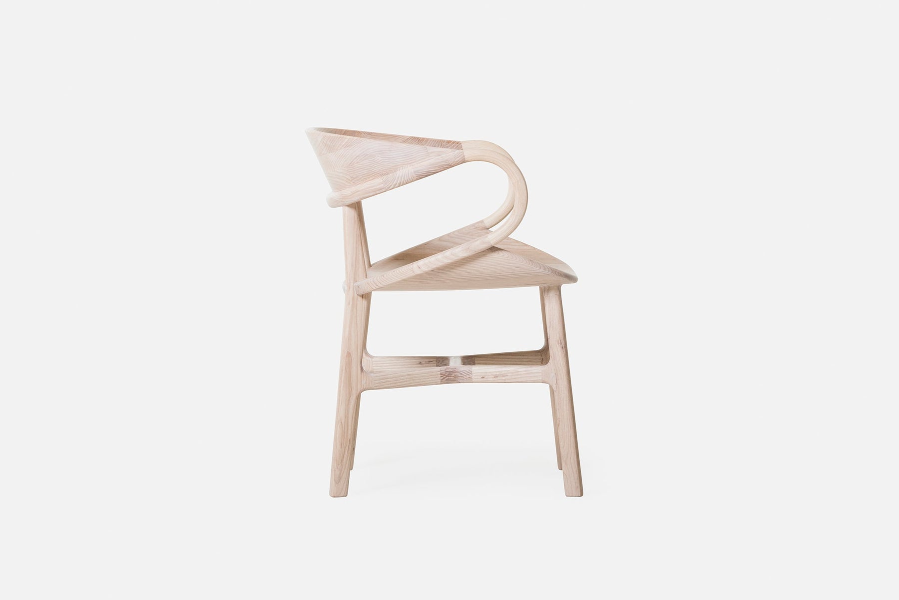 Vivien is a sculptural solid wood chair featuring complex curves and traditional joinery. Crafted using a combination of technology and hand work, large sections of solid wood are machined on a CNC, with additional carving, assembly and finishing all performed by hand. A series of carved wood components are joined with mortise and tenon, creating the appearance of continuous curves, while the visible join lines and beautiful grain patterns reveal the chair’s construction.