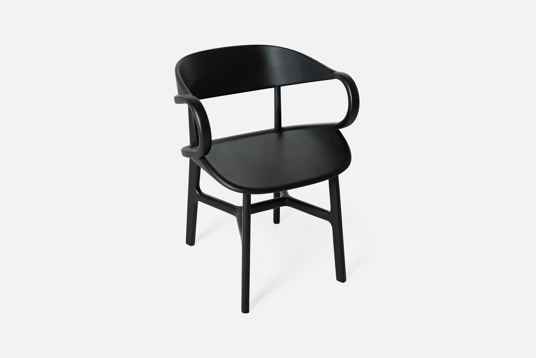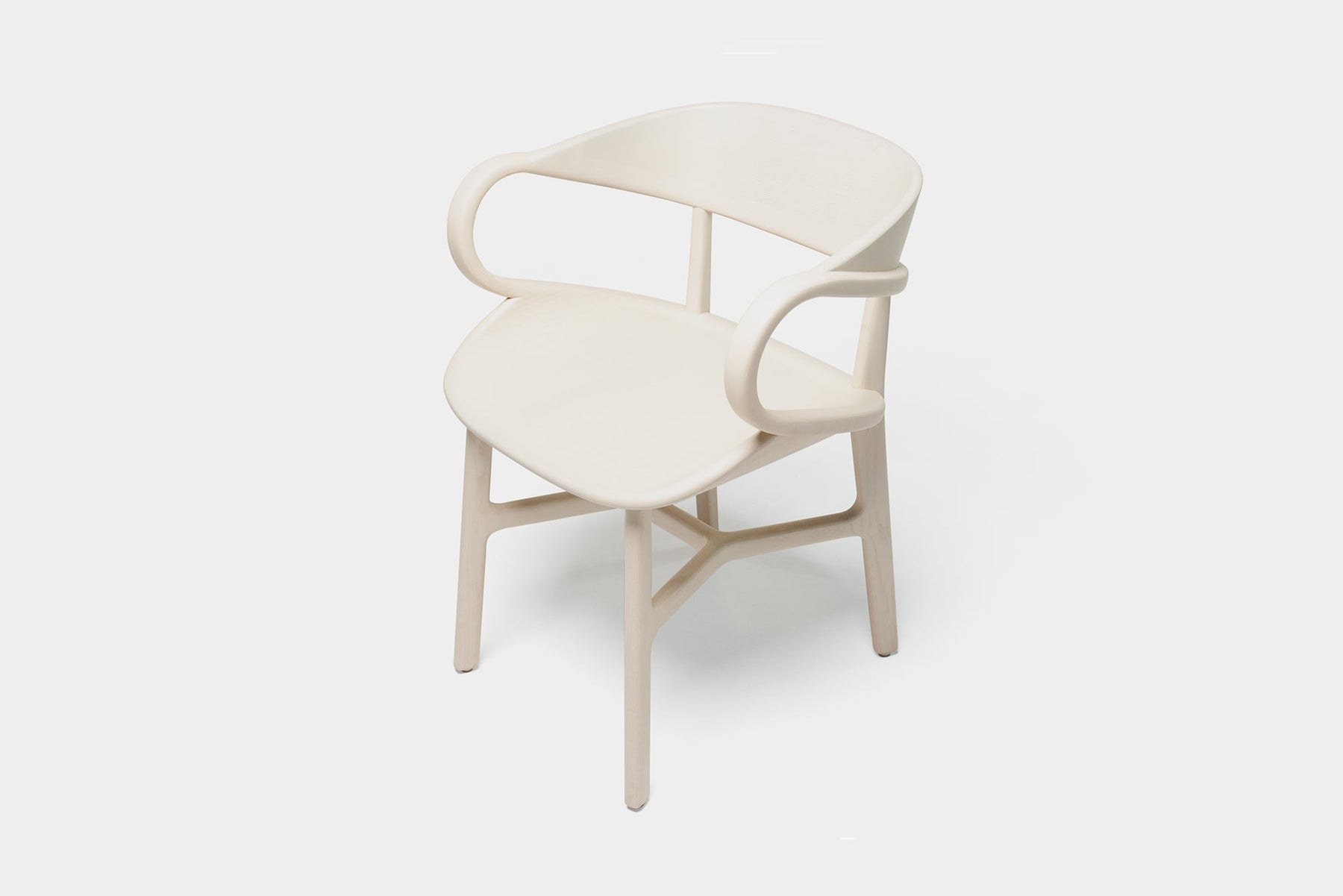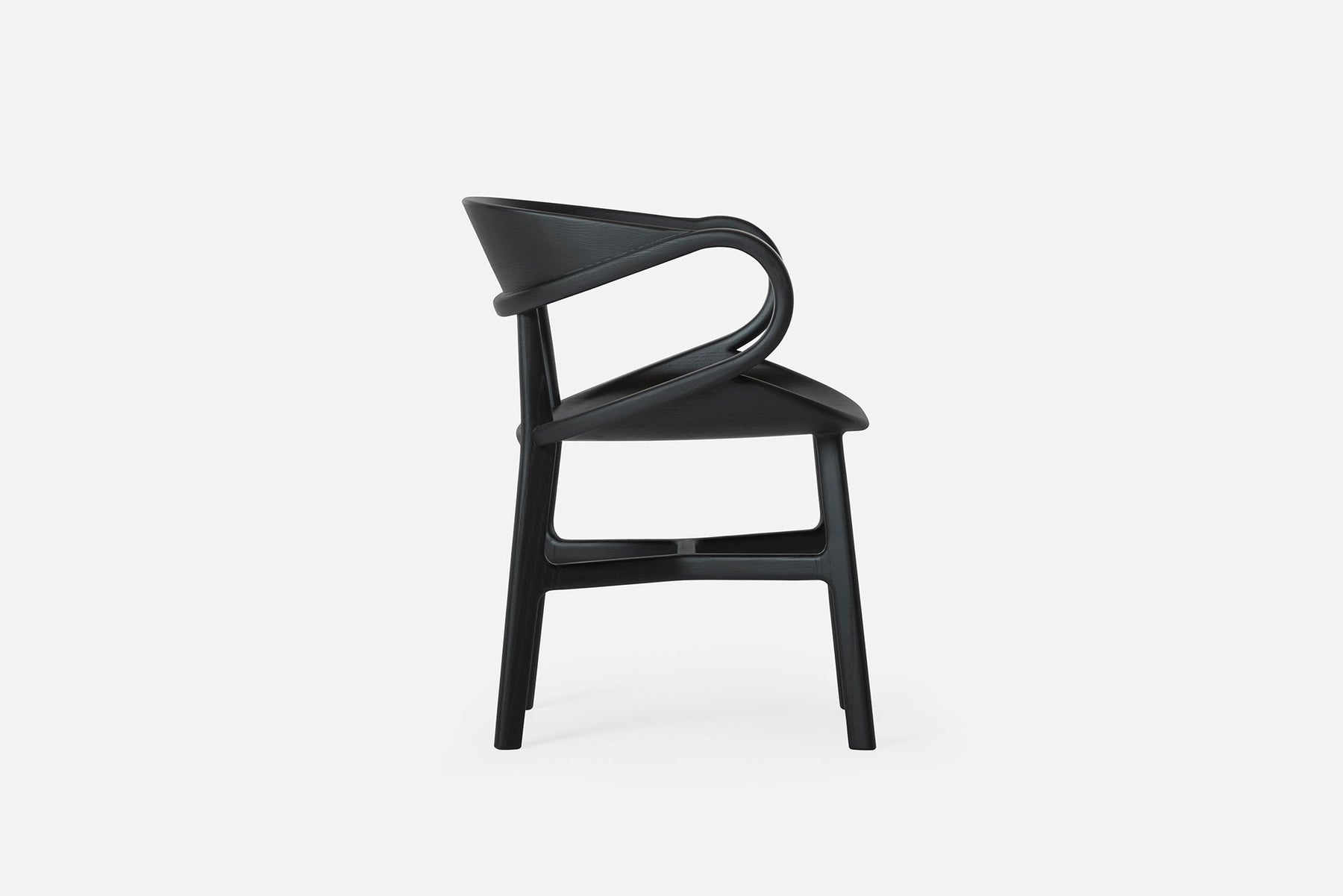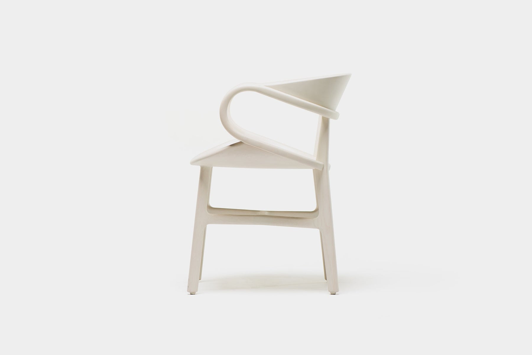 Vivien is a sculptural solid wood chair featuring complex curves and traditional joinery. Crafted using a combination of technology and hand work, large sections of solid wood are machined on a CNC, with additional carving, assembly and finishing all performed by hand. A series of carved wood components are joined with mortise and tenon, creating the appearance of continuous curves, while the visible join lines and beautiful grain patterns reveal the chair’s construction.