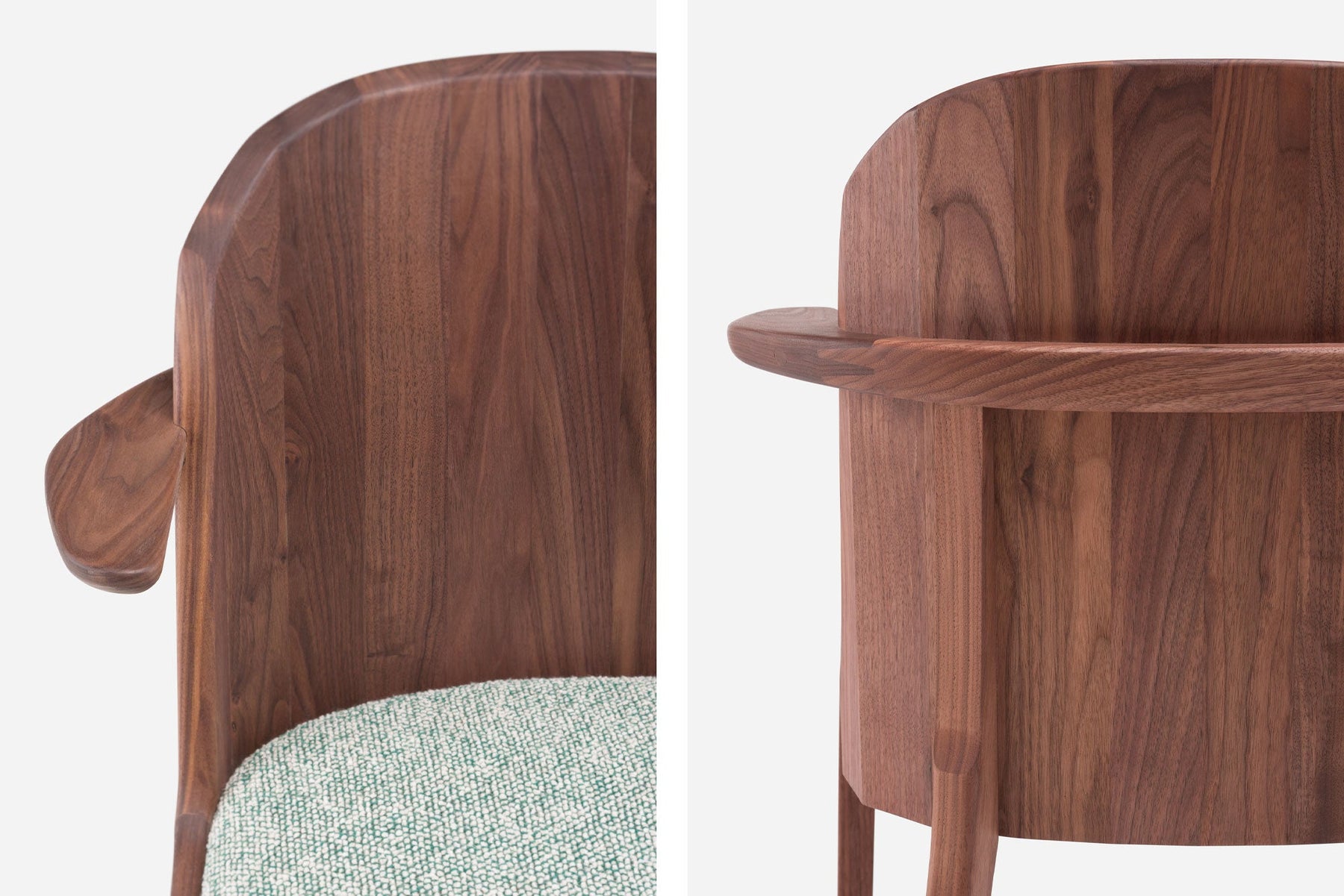 Available in black walnut, white oak, or ash in a range of finishes, and a range of fabric and leather options. See menus below for further material information.