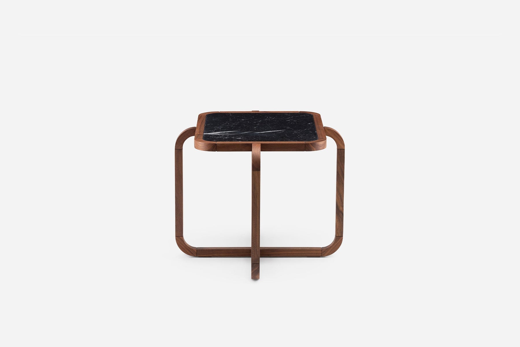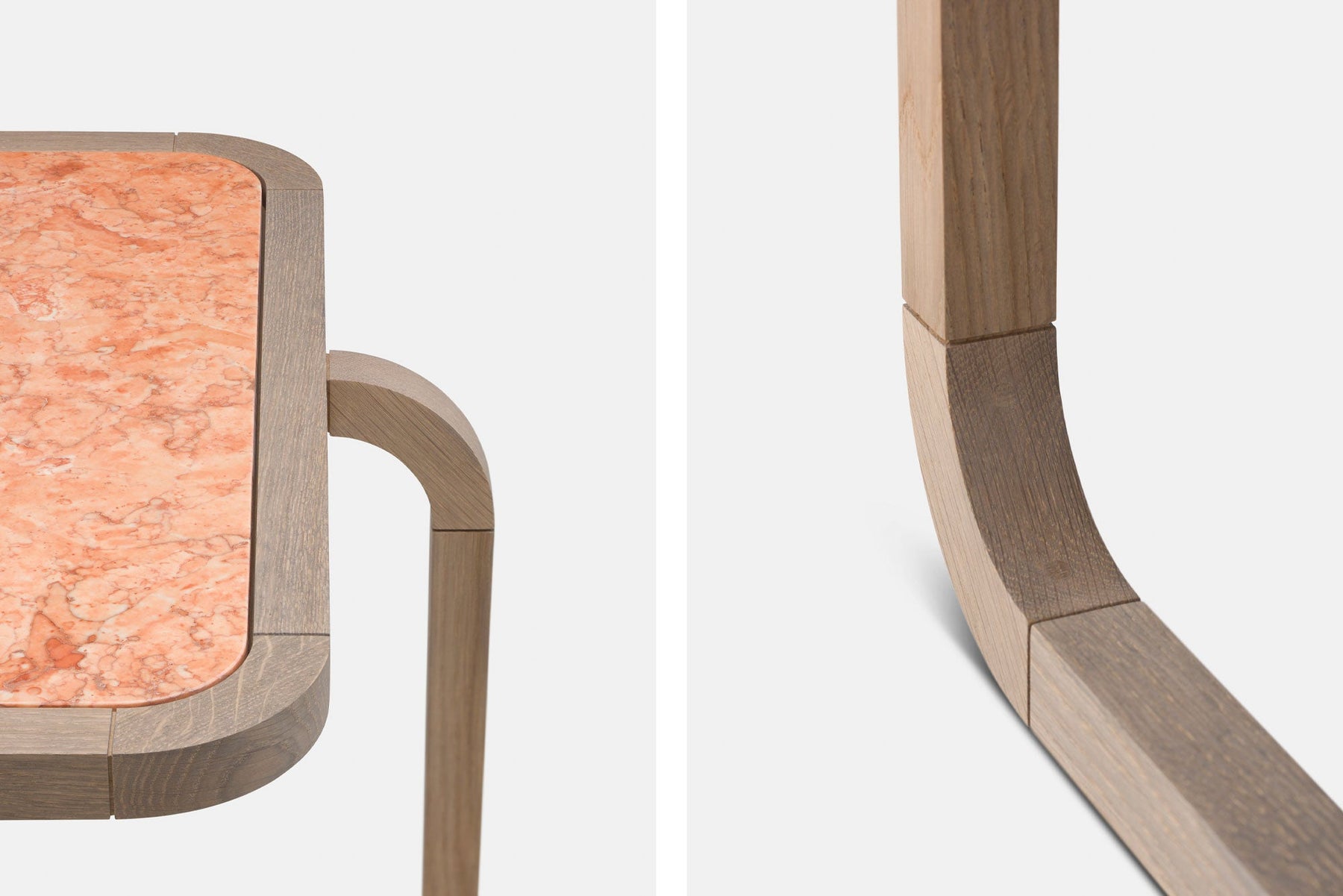 Available in black walnut, white oak, or ash in a range of finishes and Carrara marble, Black Marquina marble, Rosa Negrais marble, or Ataija Creme limestone. See menus below for further material information.