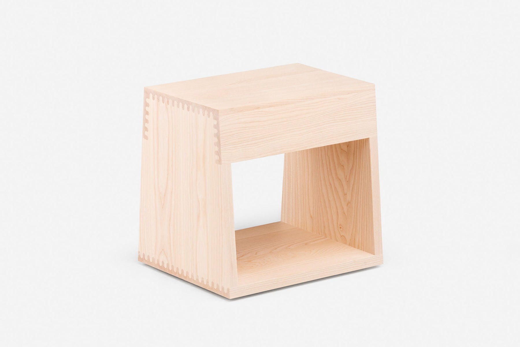 Maia is a multi-functional product that can be used as a side table, stool or step. Solid wood components are connected with complex joinery which Matthew Hilton designed to harness CNC technology. This beautiful joint, also found on Coniston Mirrors, Bretton Bedside, and Overton Table, is not possible by any other means. The product reflects Matthew Hilton's love of craft – both technological and traditional.