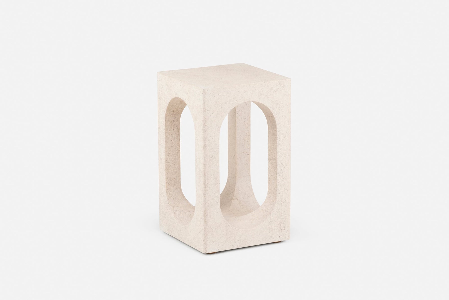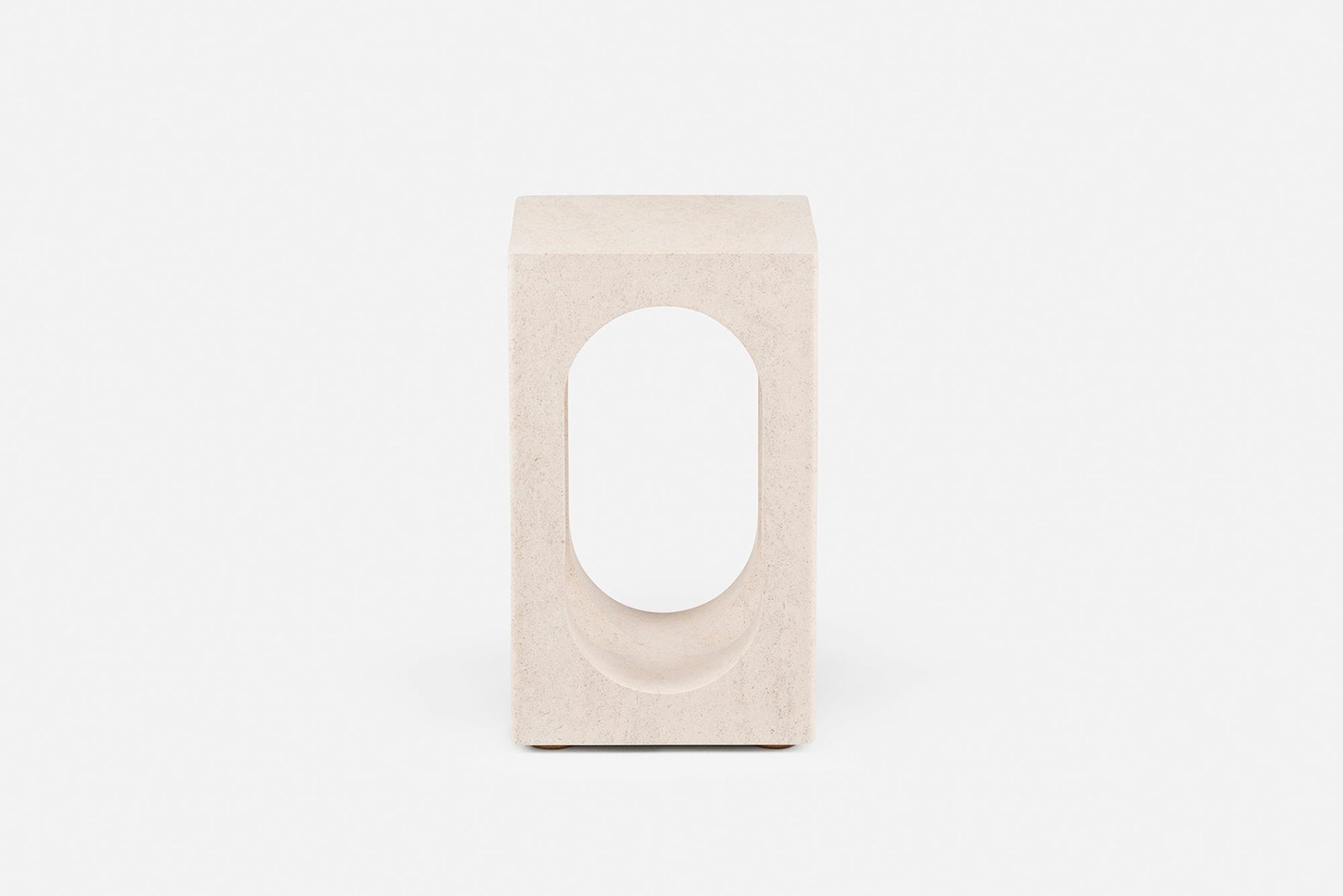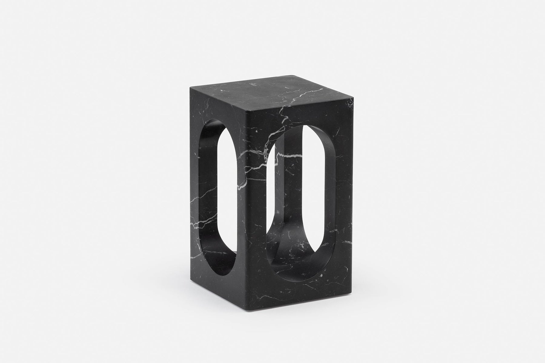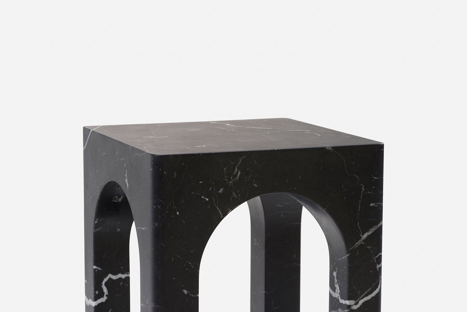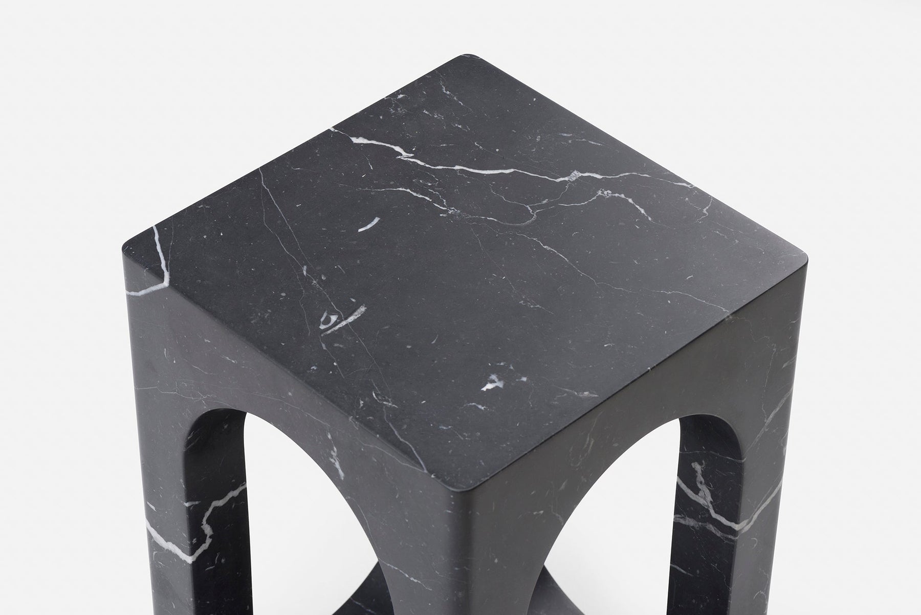 Carlo is a sculptural side table with a classical material and form. Carved from a single block of marble, the table has an architectural quality with its vaulted roof and floor that embraces the beauty and strength of the material.