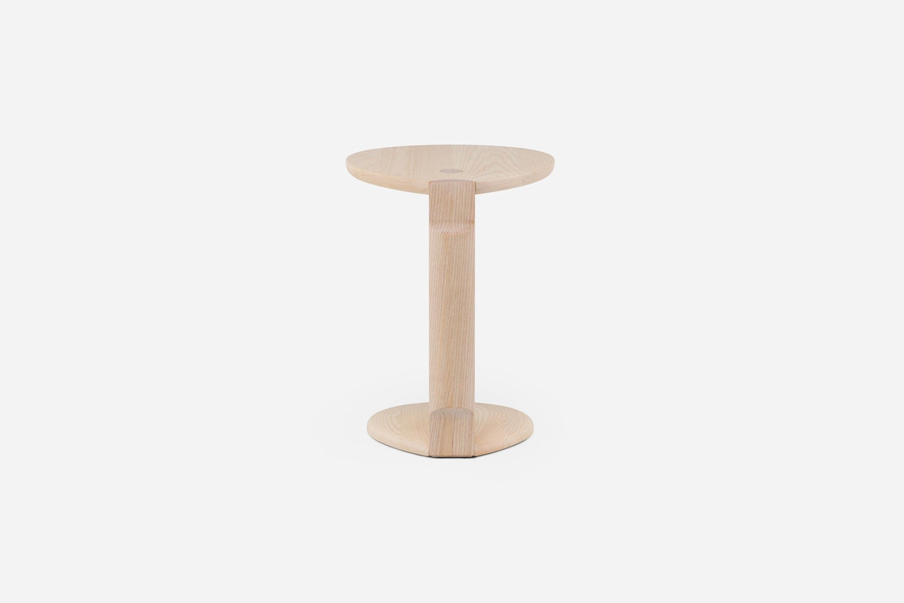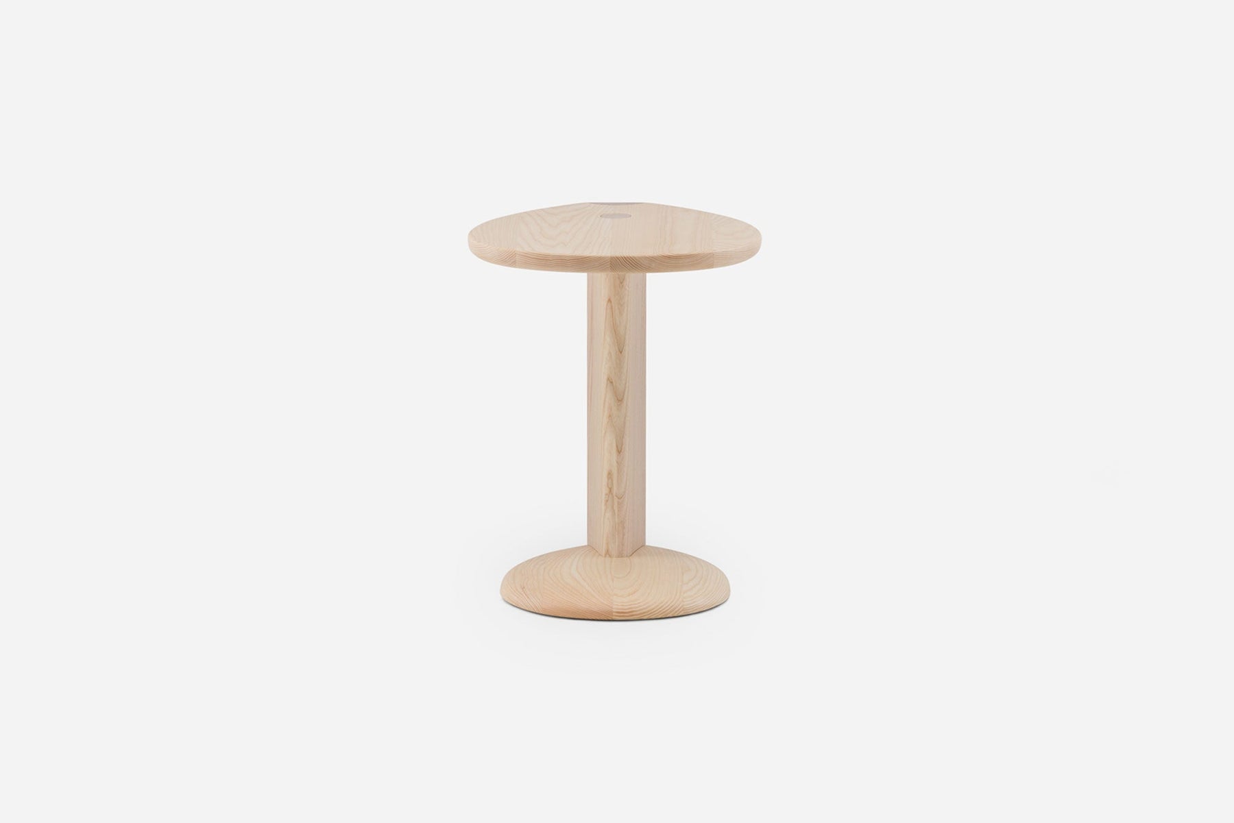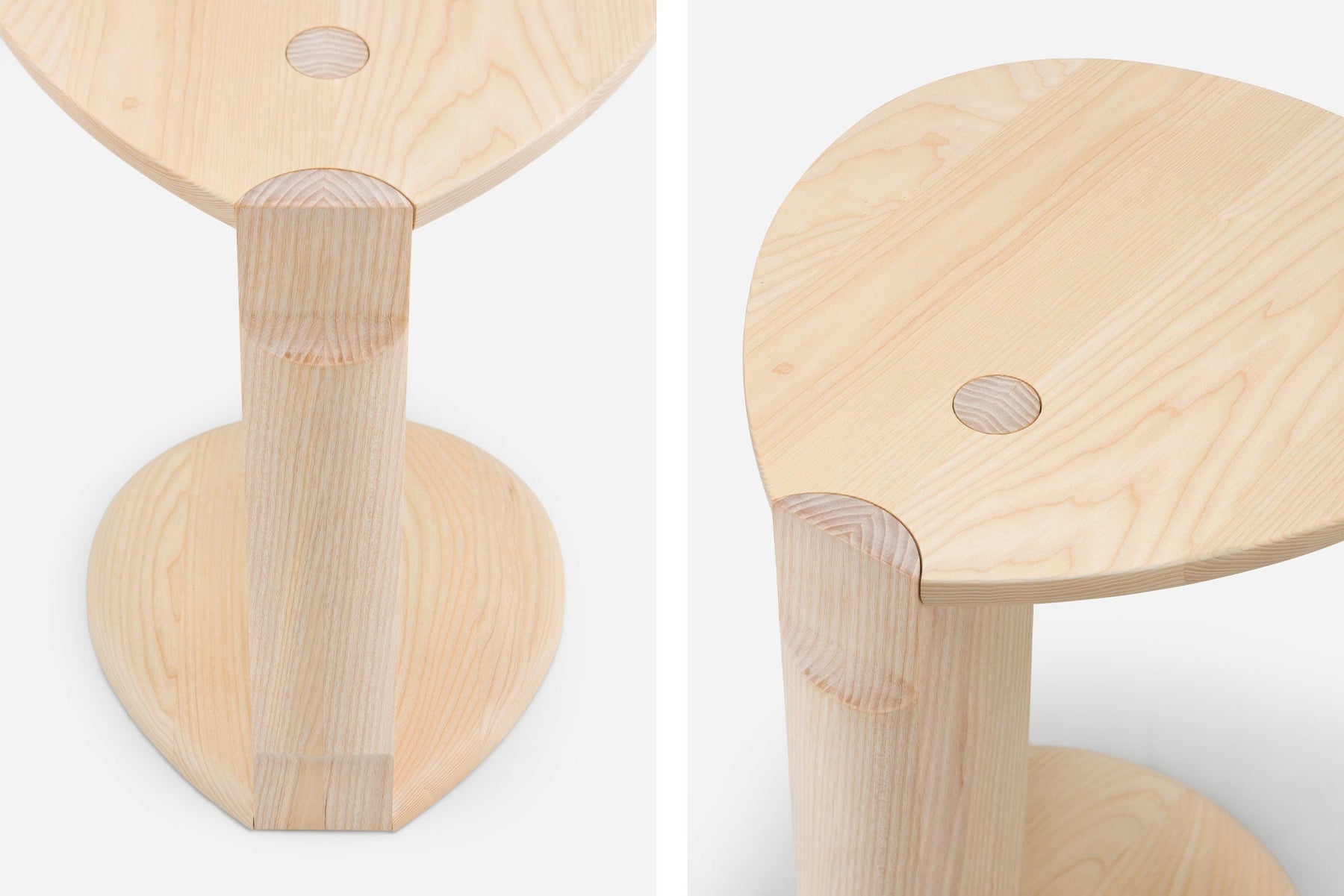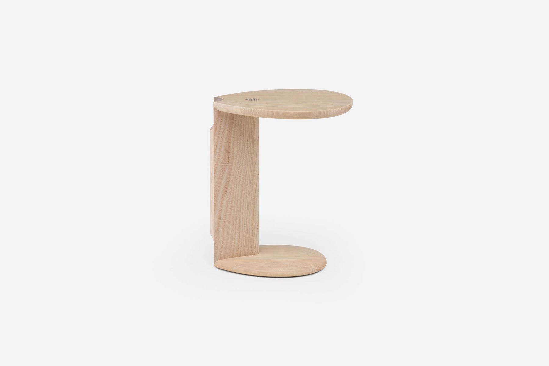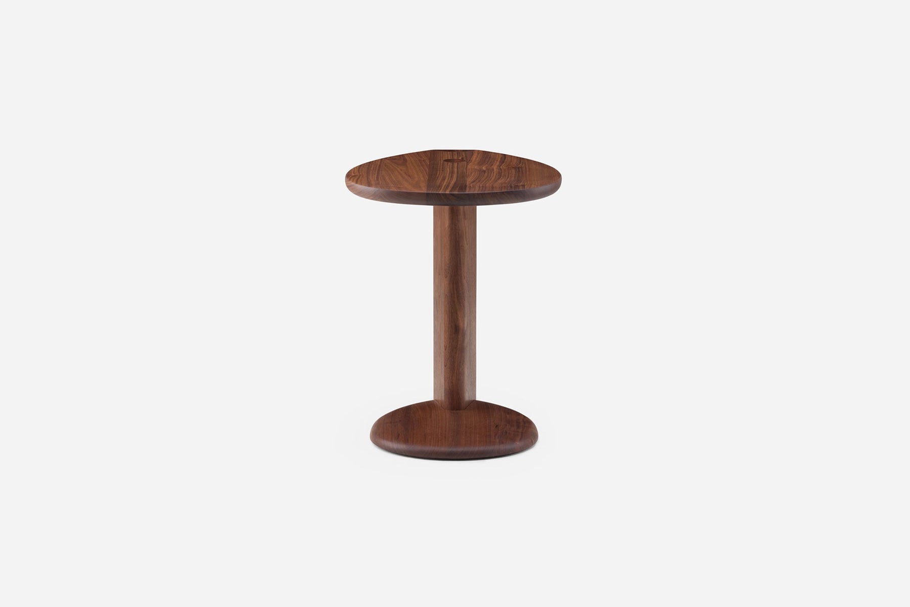 Twenty-Five Side Table is a versatile and sculptural table inspired by the phases of the moon. It has a soft, organic pebble shape and a rounded tabletop edge possessing an inviting tactility. Beautiful joinery where the leg intersects the tabletop celebrates solid wood furniture craft.