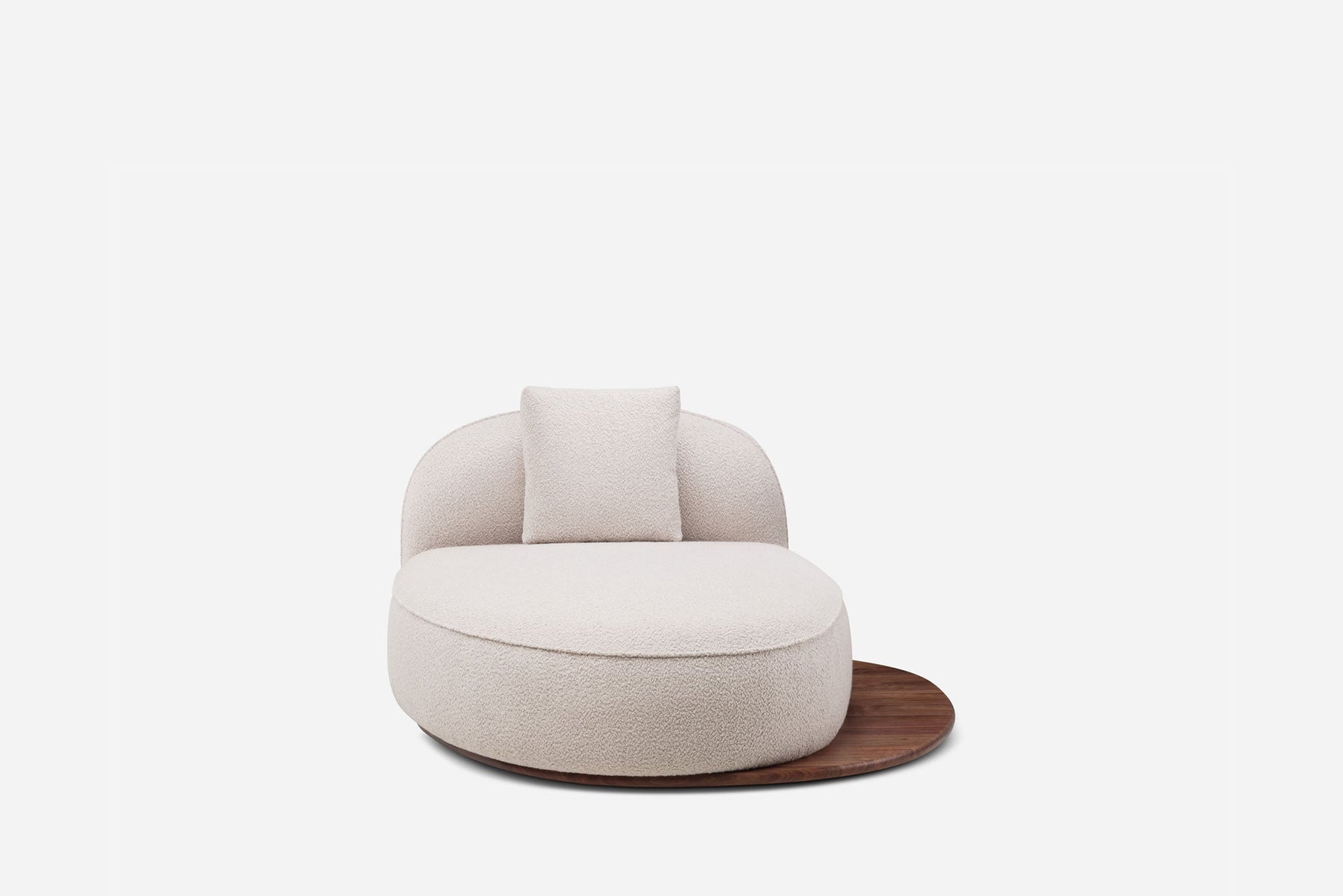 Pico Daybed is part of the Azores collection by Luca Nichetto. The Azores collection comprises sofas and small tables, conceived as islands, allowing for flexible compositions to suit unique spaces. Each piece has a soft, rounded, sculptural shape made from luxurious upholstery and rich solid wood, highlighting the craft of De La Espada.
