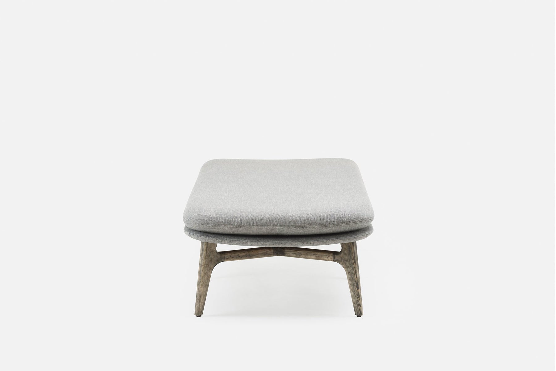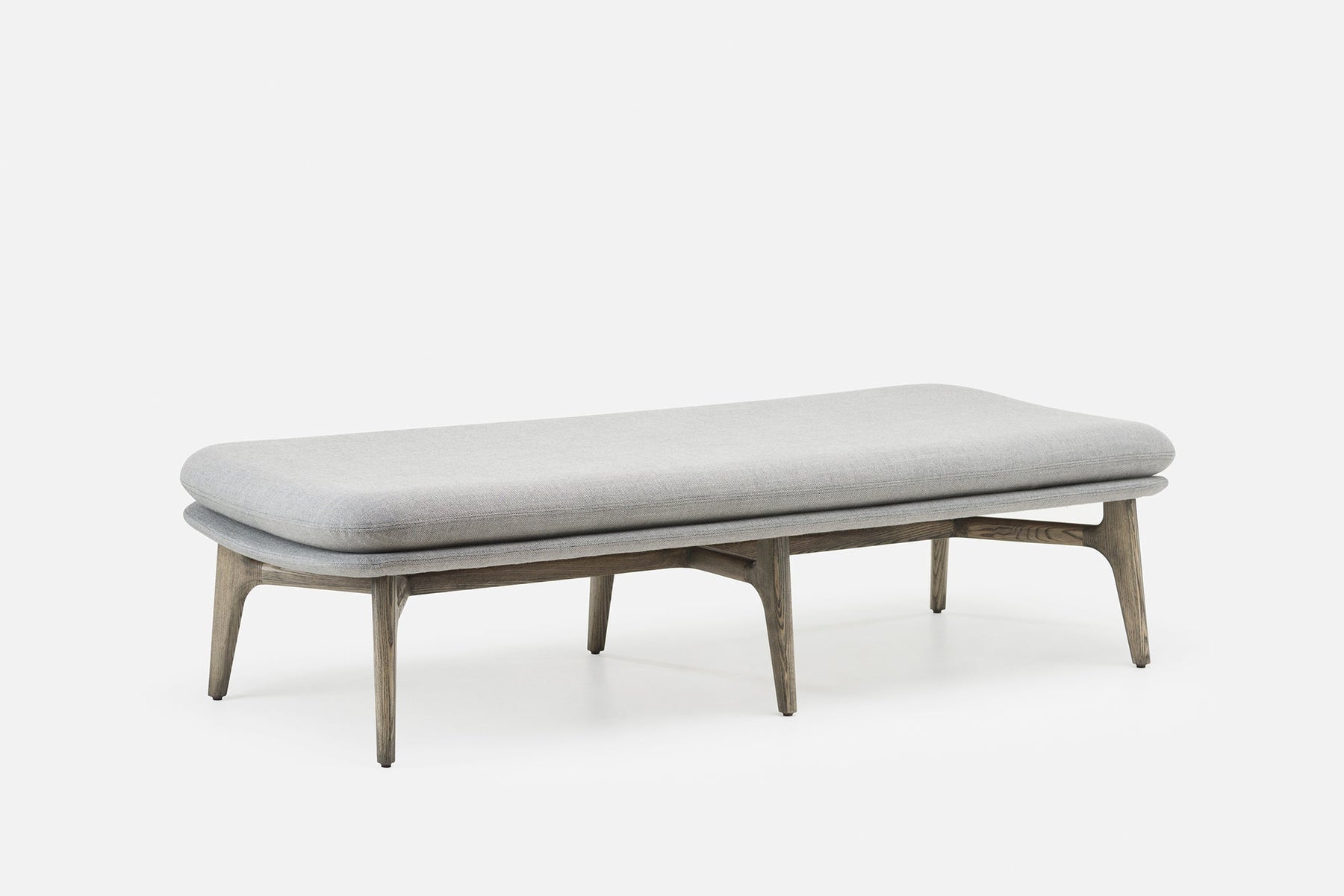 Solo Daybed is a sophisticated design with an upholstered seat set upon solid wood legs. The leg frame, designed to harness the natural strength of solid wood, includes mortise and tenon joinery throughout, and a bridle joint where the cross brace components intersect.