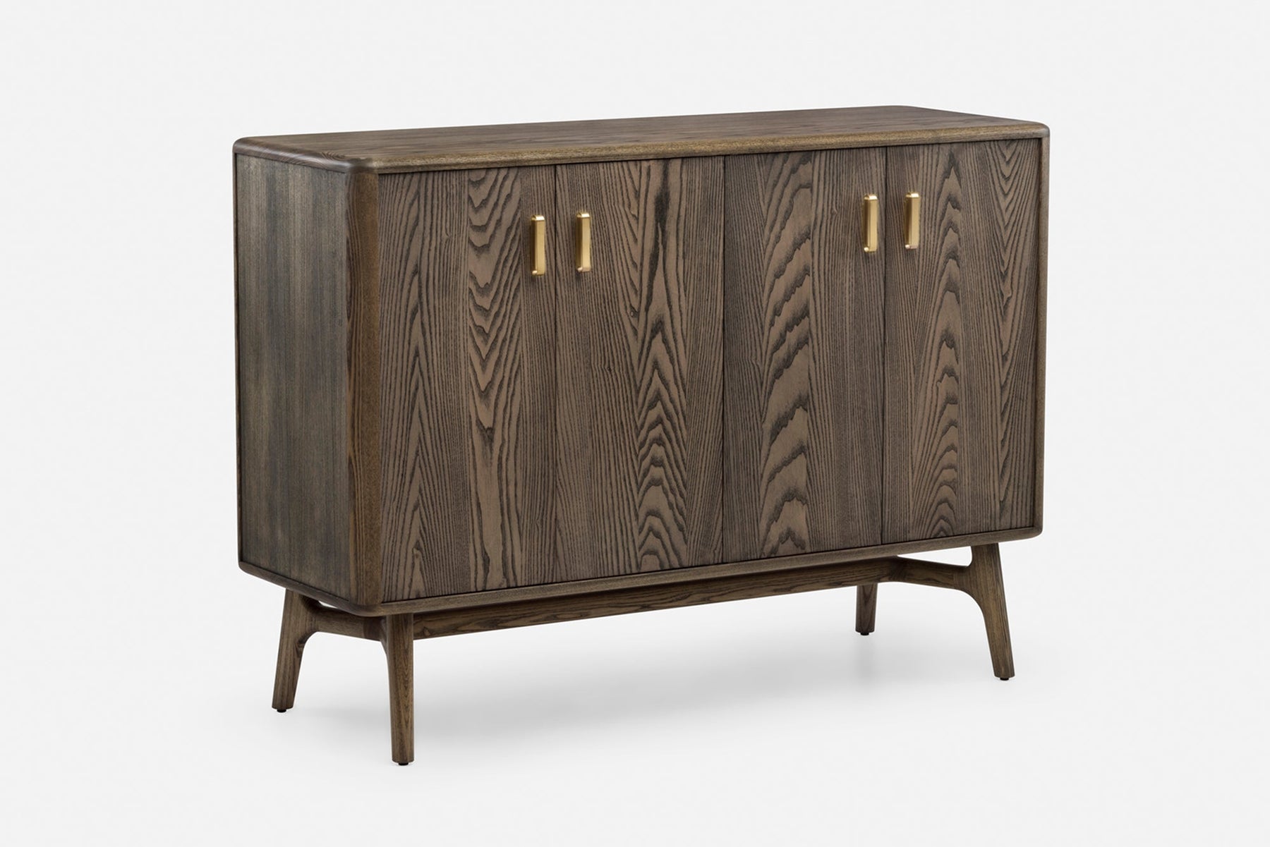 Available in black walnut, white oak, or ash in a range of finishes with brass door pulls. See menus below for further material information.