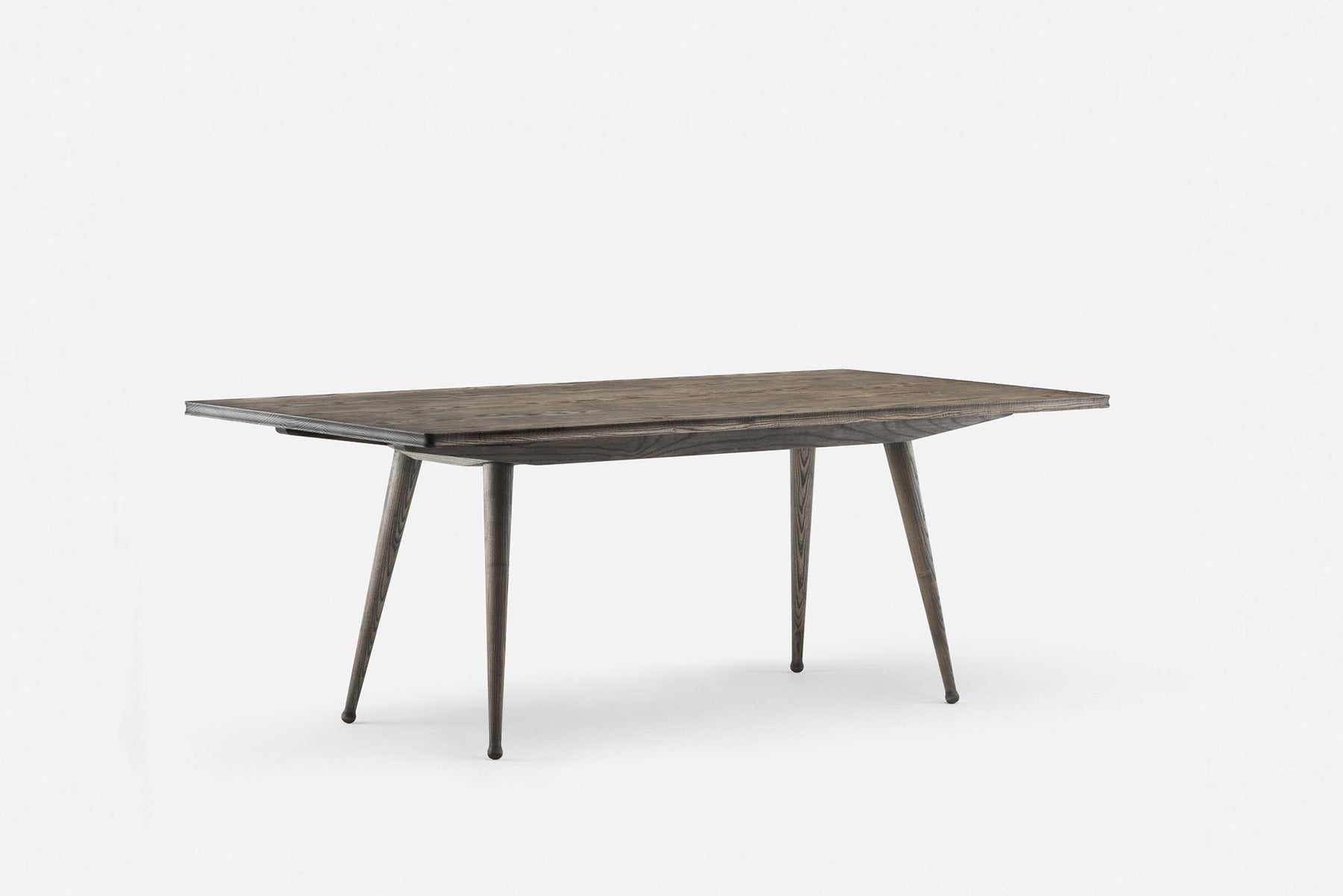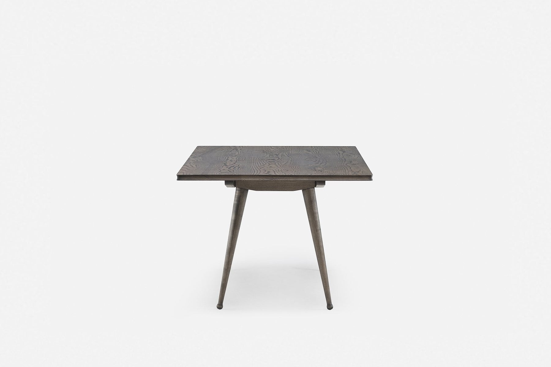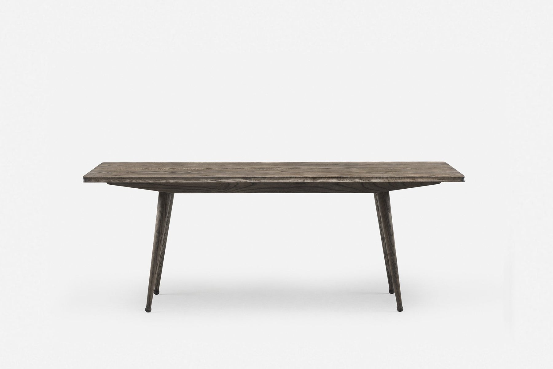 Available in black walnut, white oak, or ash in a range of finishes, as a single timber/finish or timber combinations including: Danish oiled walnut and ash, Danish oiled walnut and oak, black oiled walnut and ash, or white oiled oak and ash. Tables with timber combination tabletops have legs in the same timber/finish as the outermost planks on the tabletop.