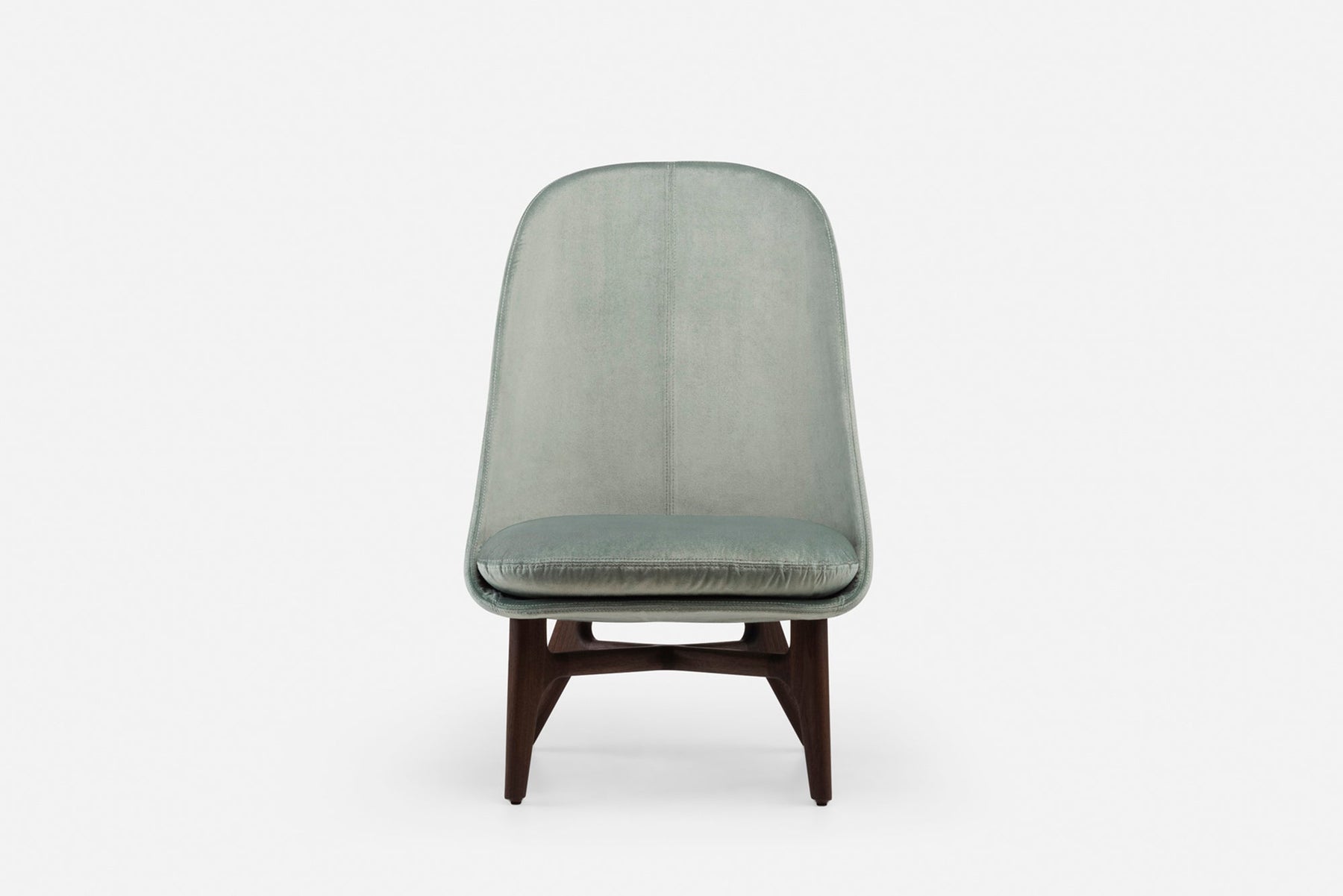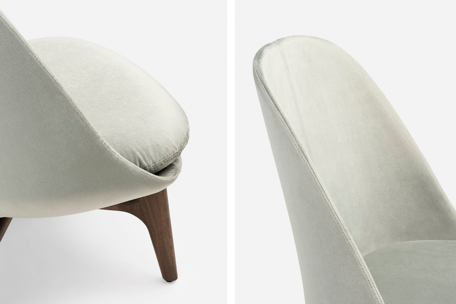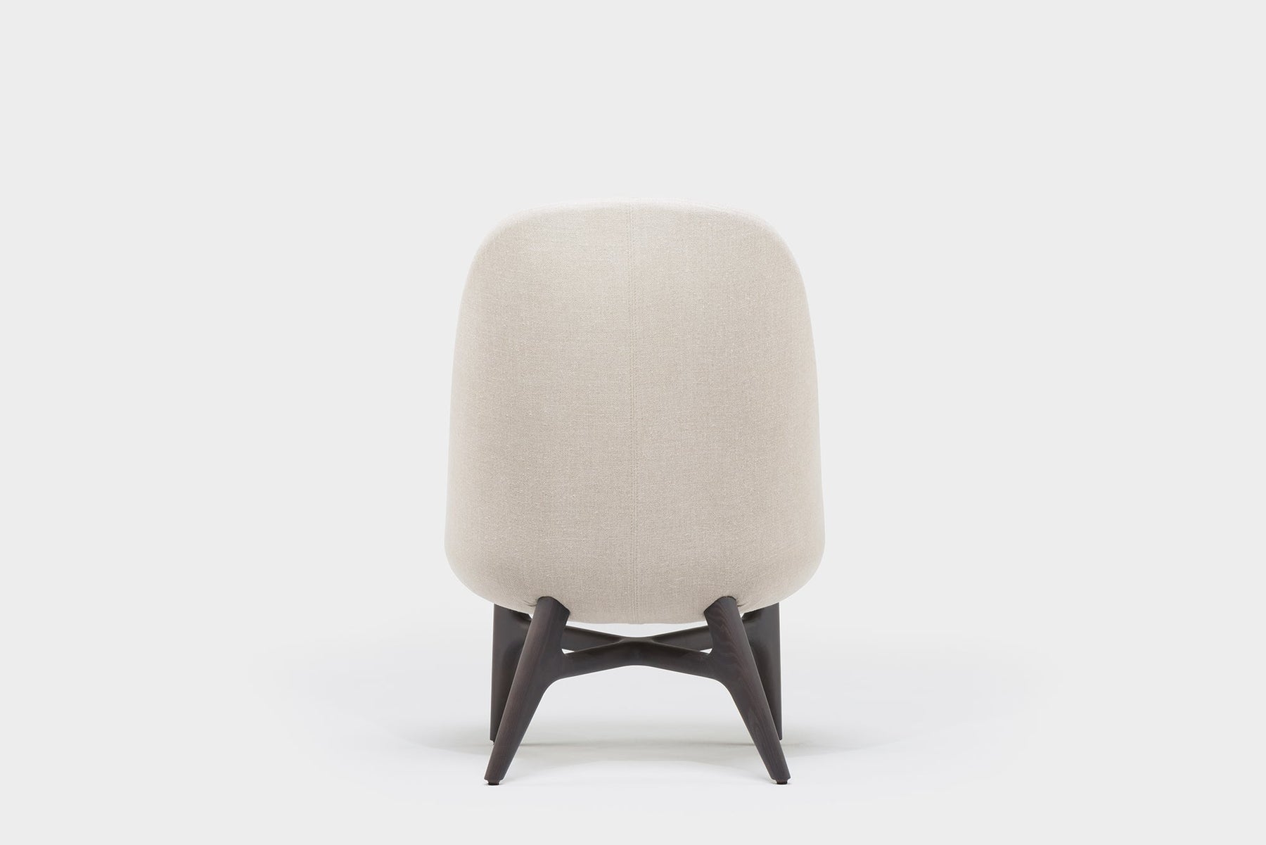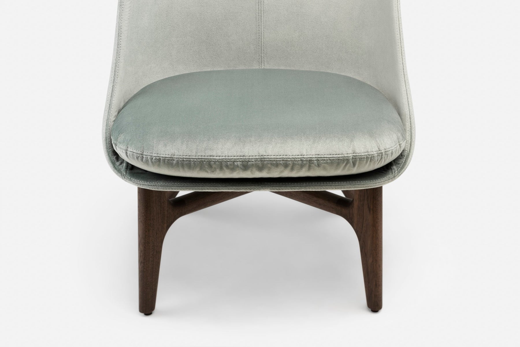 Inspired by the Eames Shell Chair, the Solo Chair is an updated version that transforms the early industrial look of the Eames iconic chair into a sophisticated, comfortable chair that is suitable both in domestic and commercial settings. Solo chair has an upholstered shell that hugs the sitting body to create a microcosmic universe for the person, becoming an object of shelter and refuge, where the person can be “solo” and undisturbed while being hugged in this position.