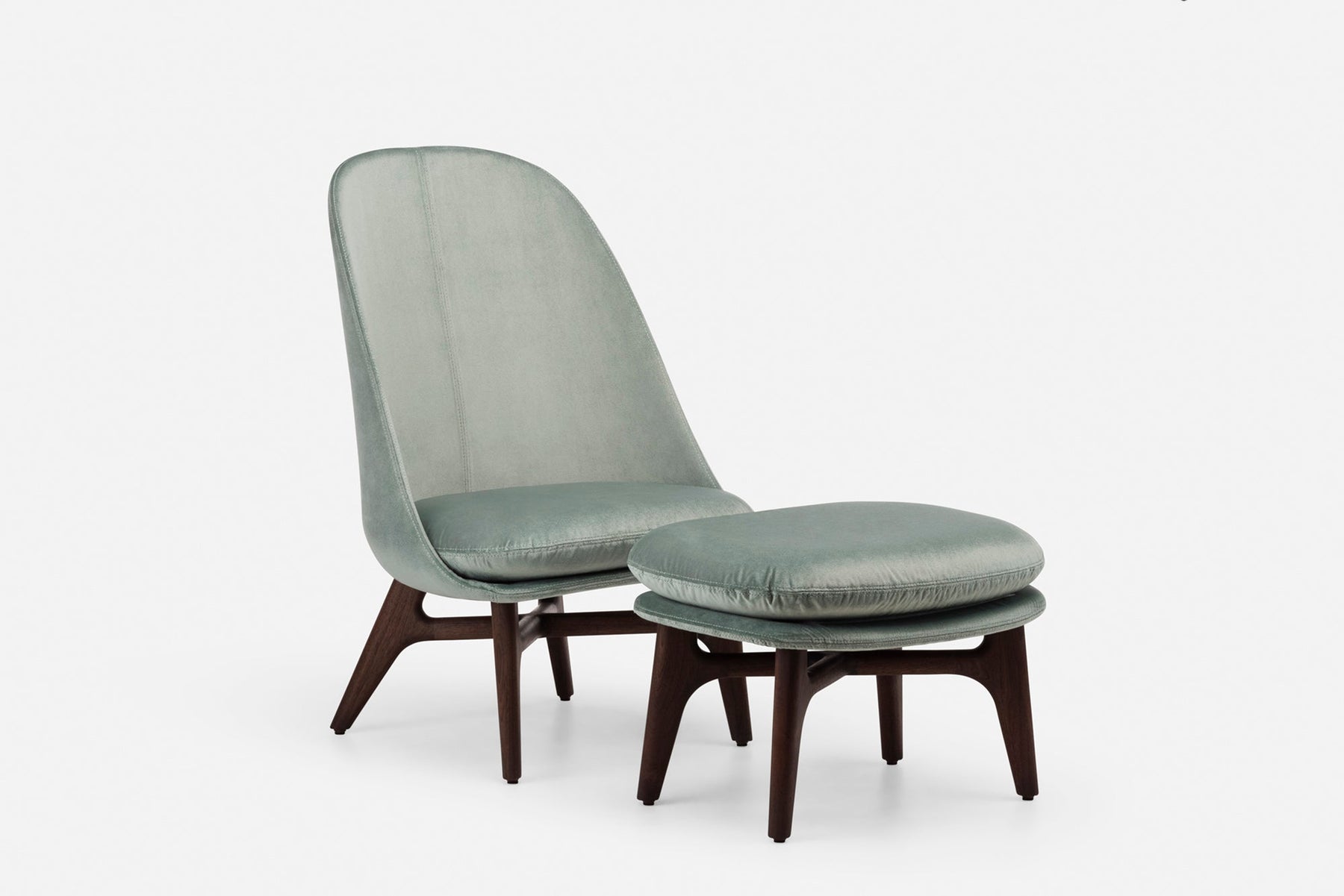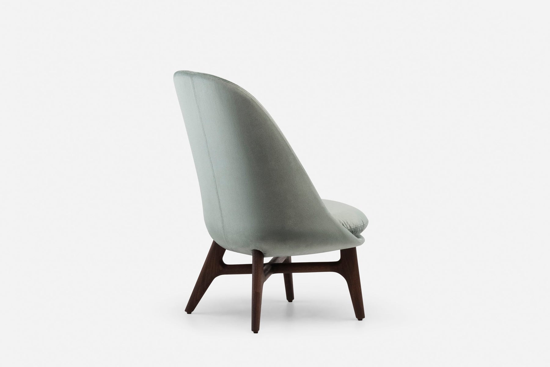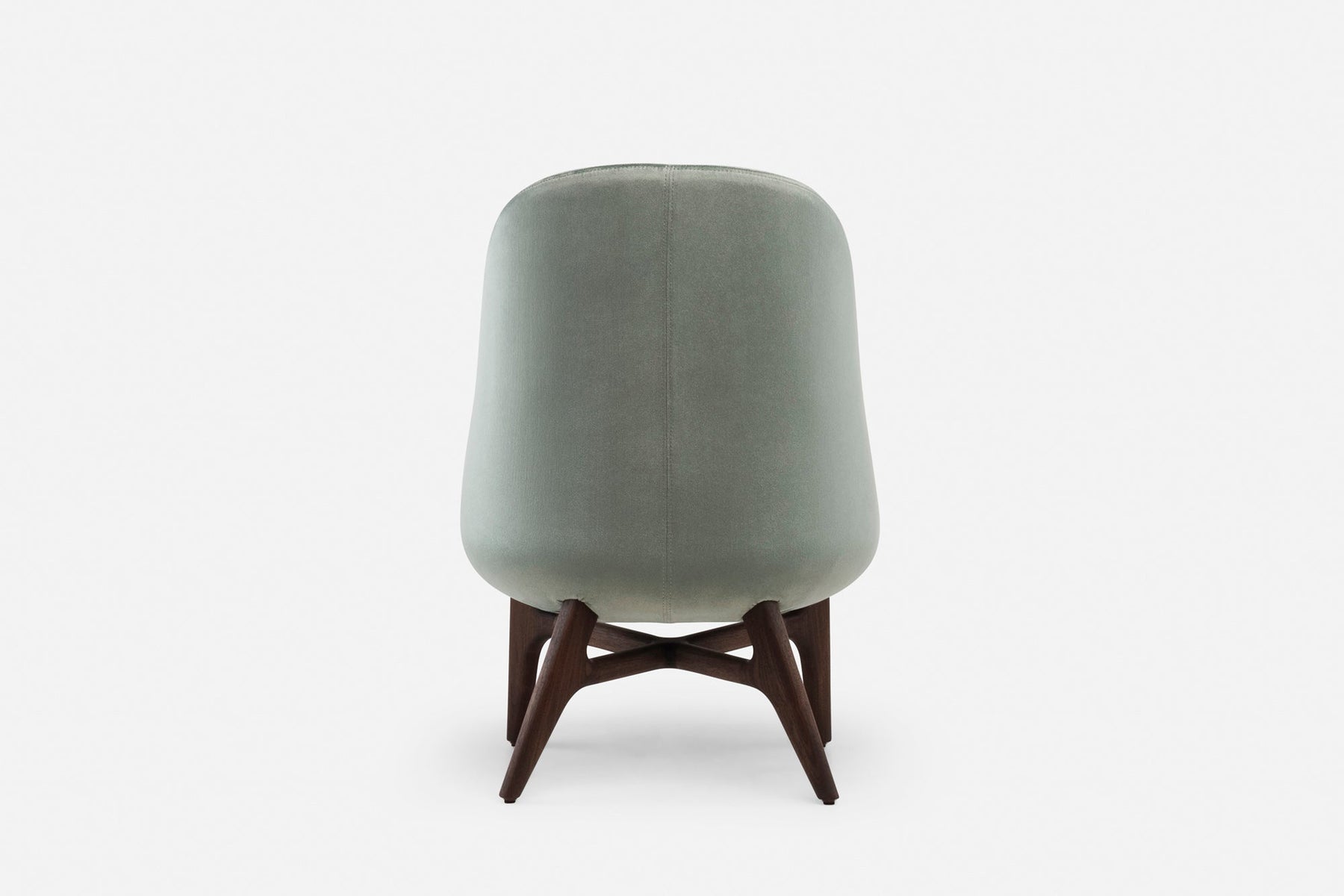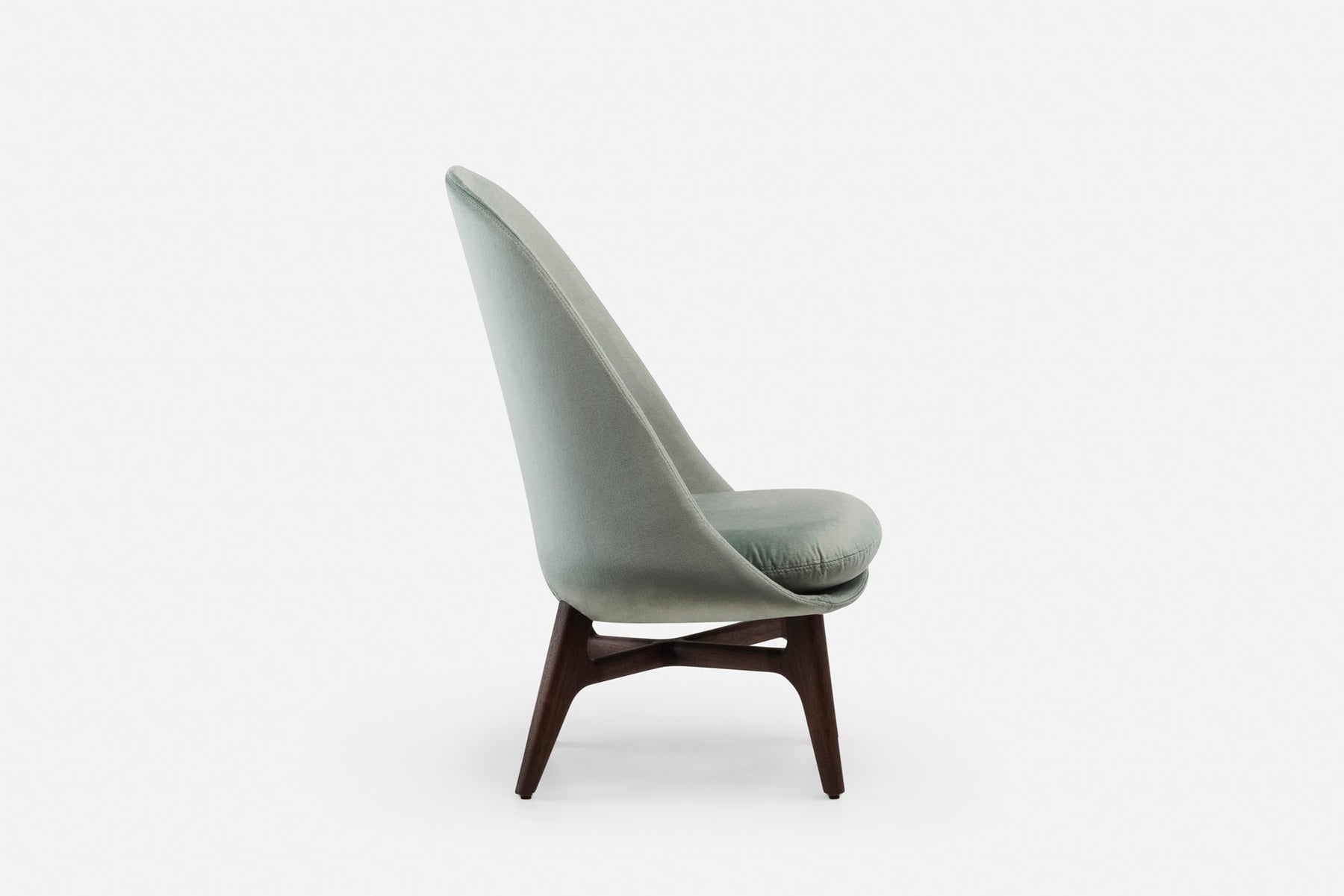 Inspired by the Eames Shell Chair, the Solo Chair is an updated version that transforms the early industrial look of the Eames iconic chair into a sophisticated, comfortable chair that is suitable both in domestic and commercial settings. Solo chair has an upholstered shell that hugs the sitting body to create a microcosmic universe for the person, becoming an object of shelter and refuge, where the person can be “solo” and undisturbed while being hugged in this position.