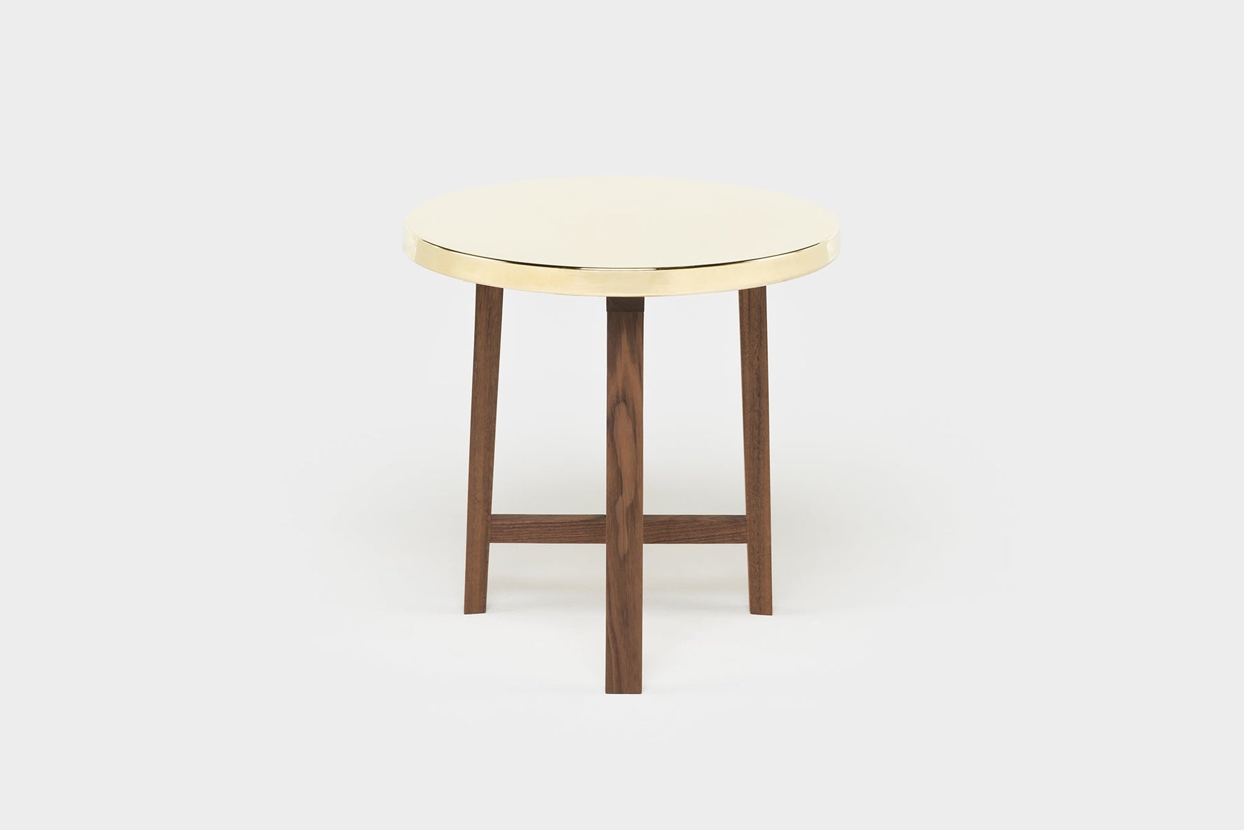 Available in black walnut, white oak, or ash in a range of finishes with top in polished brass or polished copper. See menus below for further material information.