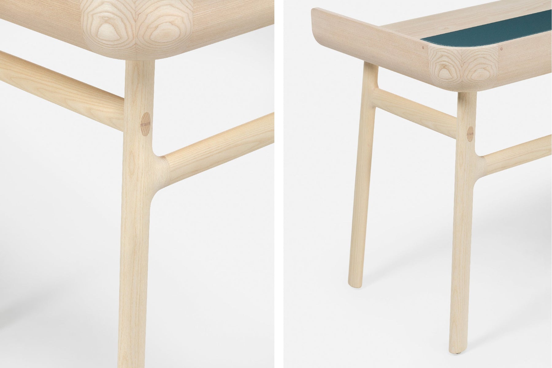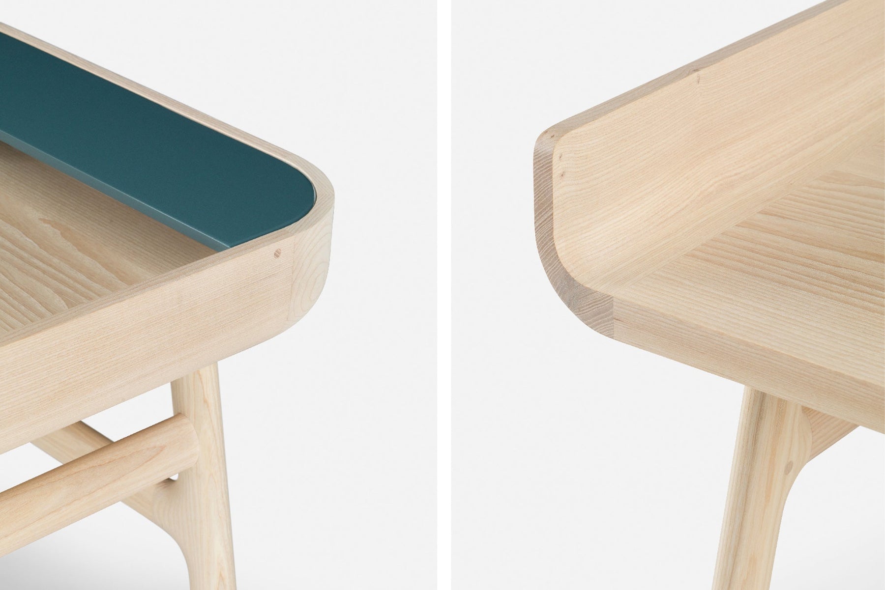 Available in black walnut, white oak, or ash in a range of finishes. Solid wood frame with engineered solid wood table surface. Details in painted HDF in a choice of our full range of colours with a satin matte or gloss finish. See menus below for further material information. Optional cable management on the left and right hand sides with a titanium-coating in a brass colour.