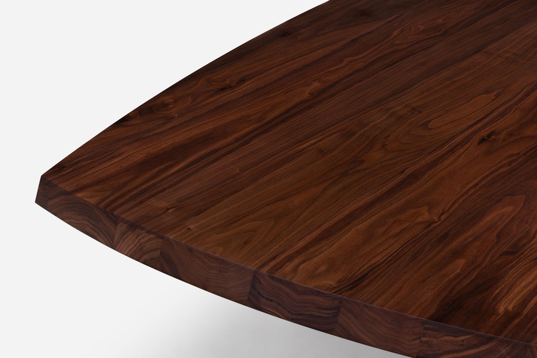 Available in black walnut, white oak, or ash in a range of finishes. Leg available in timber or timber detailed with brass or copper. See menus below for further material information.