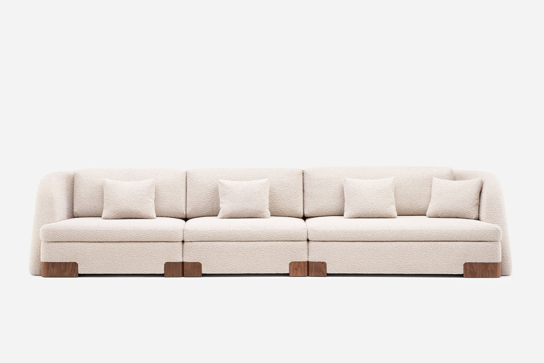 Albireo Sofa by Anthony Guerrée is a flexible seating system with gentle curves and a tall backrest, offering refined style and deep comfort. With just six key modules, Albireo Sofa can achieve numerous configurations with a sense of dynamism. The upholstered form is punctuated by timber feet and optional timber side tables.