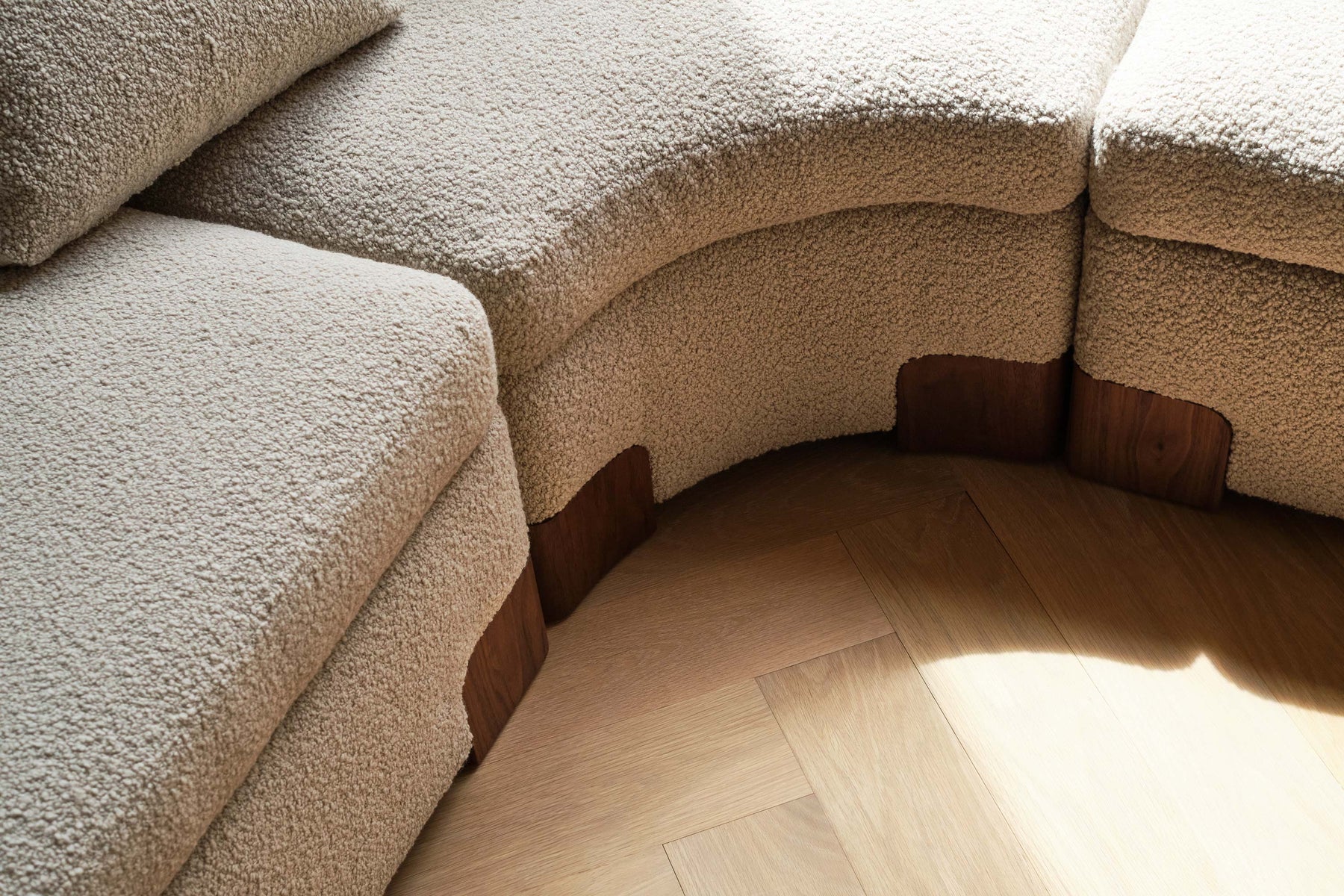 Albireo Sofa by Anthony Guerrée is a flexible seating system with gentle curves and a tall backrest, offering refined style and deep comfort. With just six key modules, Albireo Sofa can achieve numerous configurations with a sense of dynamism. The upholstered form is punctuated by timber feet and optional timber side tables.