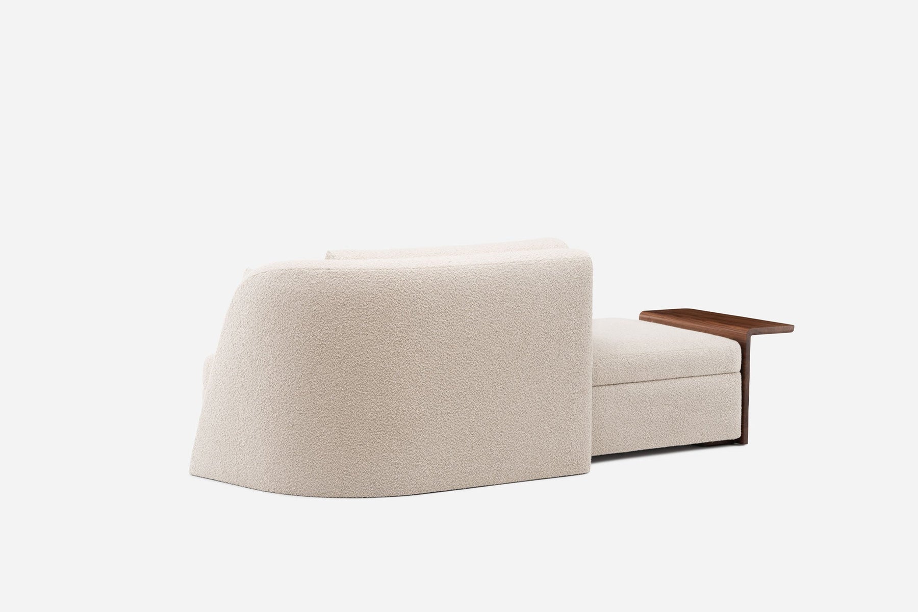 Albireo Sofa by Anthony Guerrée is a flexible seating system with gentle curves and a tall backrest, offering refined style and deep comfort. With just six key modules, Albireo Sofa can achieve numerous configurations with a sense of dynamism. The upholstered form is punctuated by timber feet and optional timber side tables.