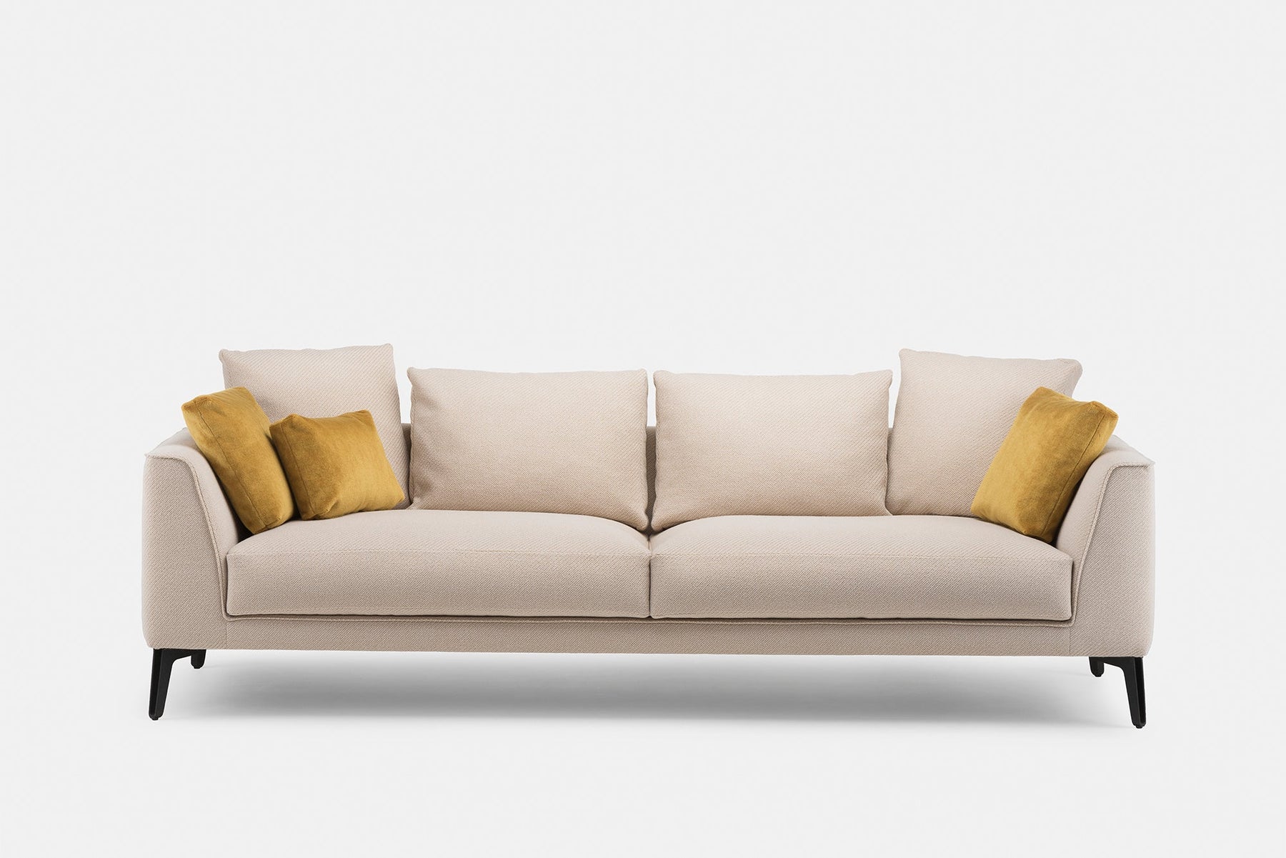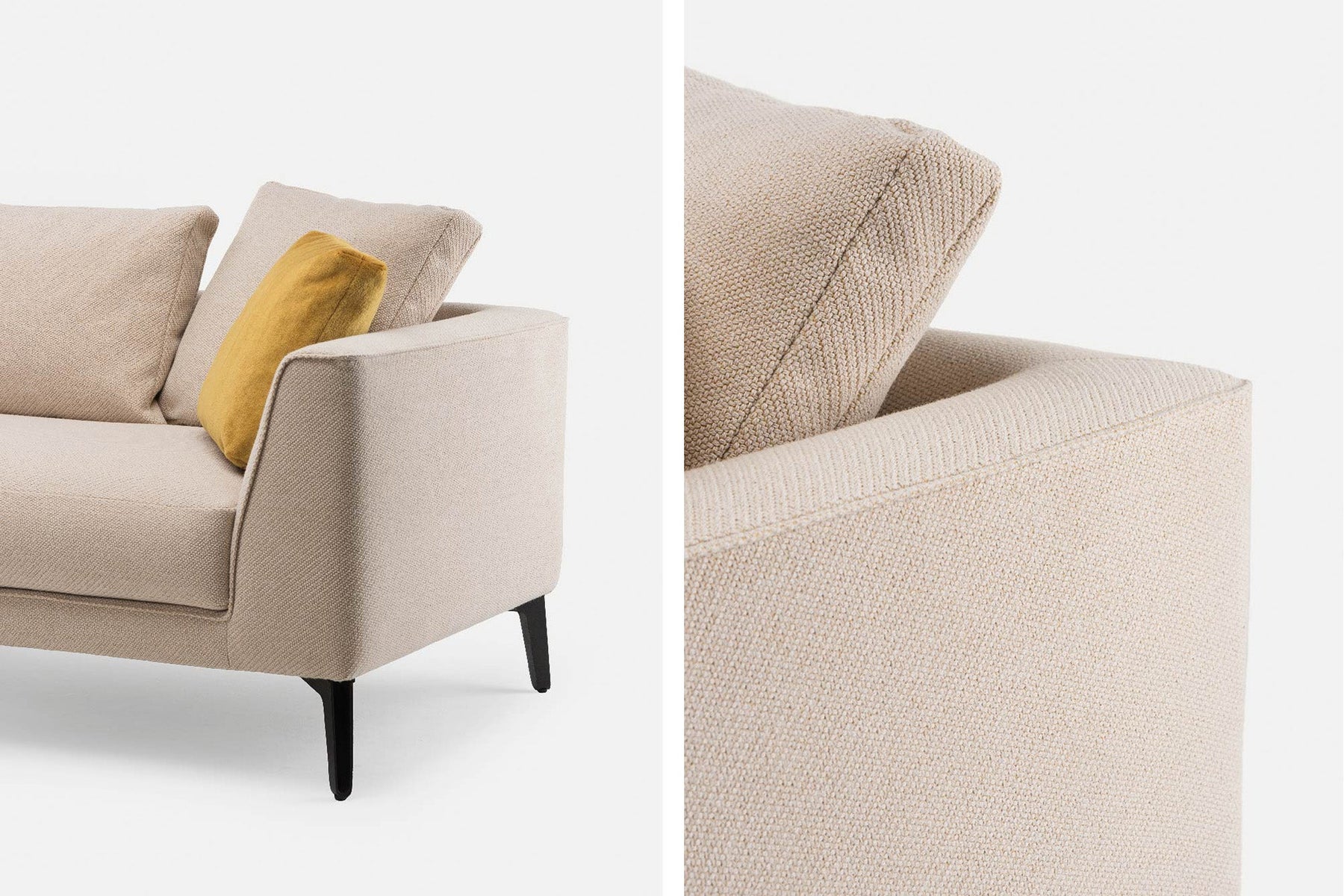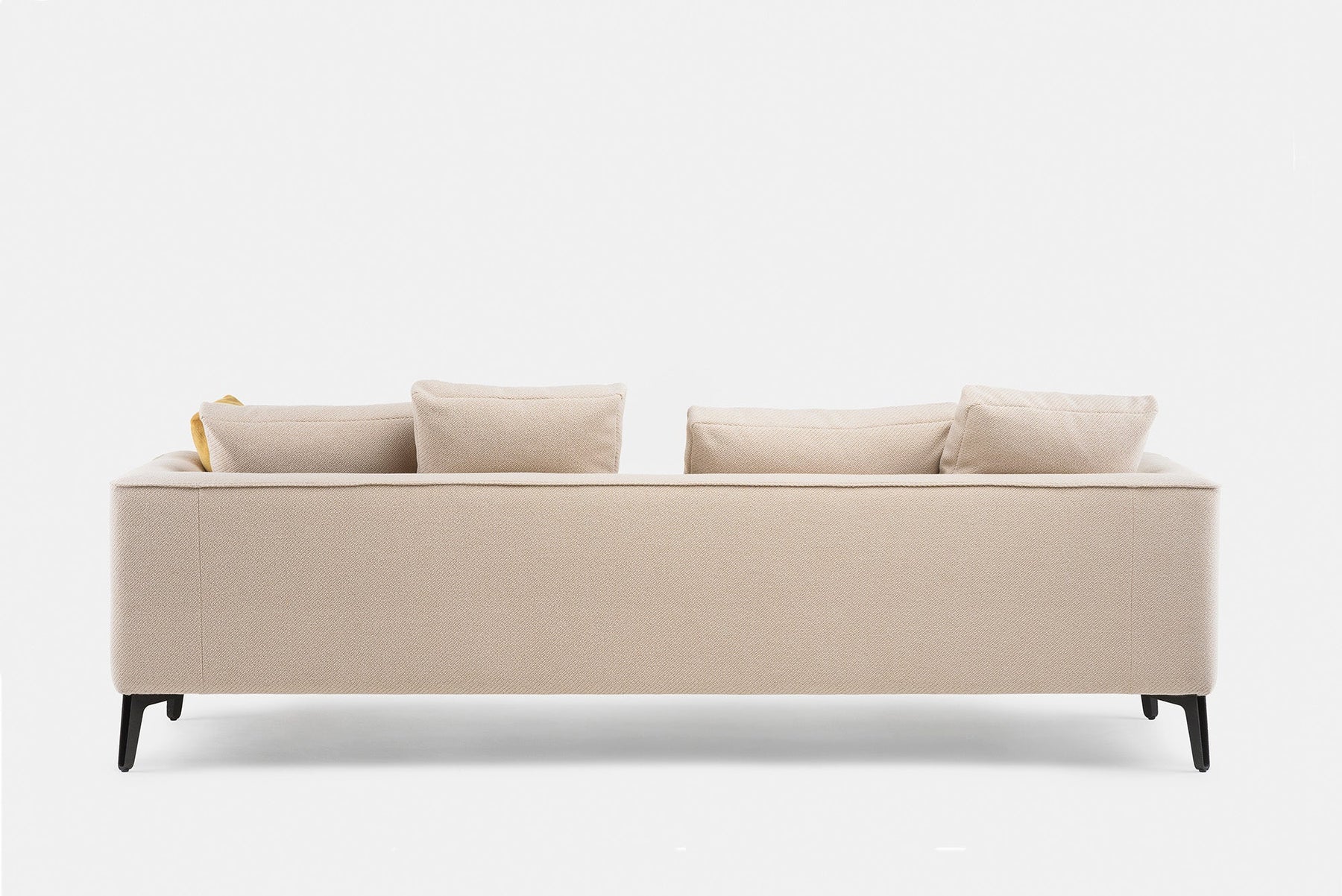 Each sofa includes four back cushions, two measuring W65 × H45 cm (W25 2/3 × H17 3/4 ”) and two measuring W50 × H50 cm (W19 3/4 × H19 3/4 ”).