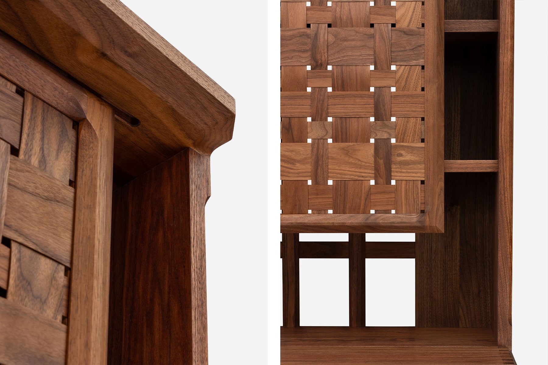 Featuring exquisite detailing and woodcraft, Arts & Crafts Tall Cabinet was inspired by the Arts and Crafts movement, a design period that champions the handmade and the intersection of functional design and the decorative arts. This cabinet references historic pieces from over 100 years ago and reinterprets them for the 21st century. It fuses the skills of artists and craftsmen from various disciplines, including woodwork, ceramics, and weaving.