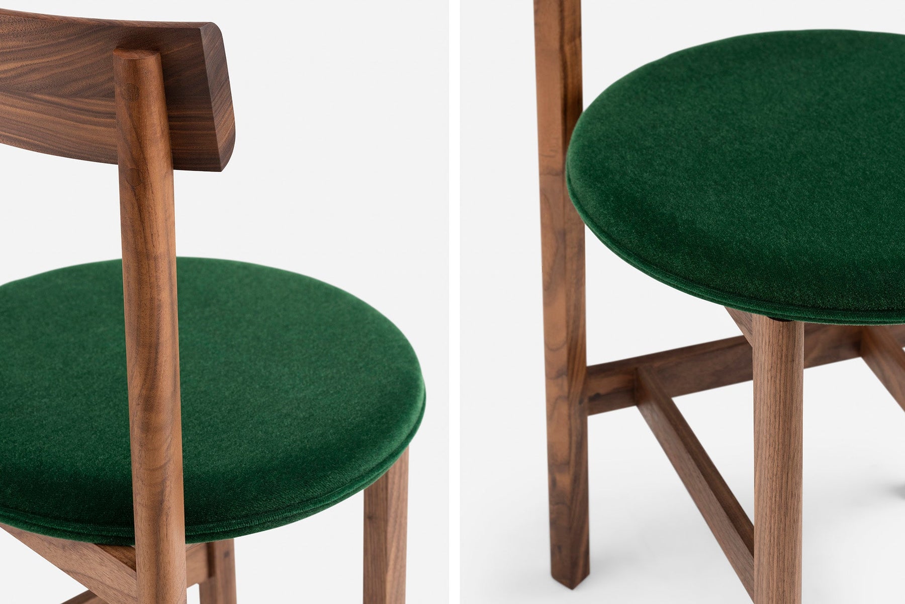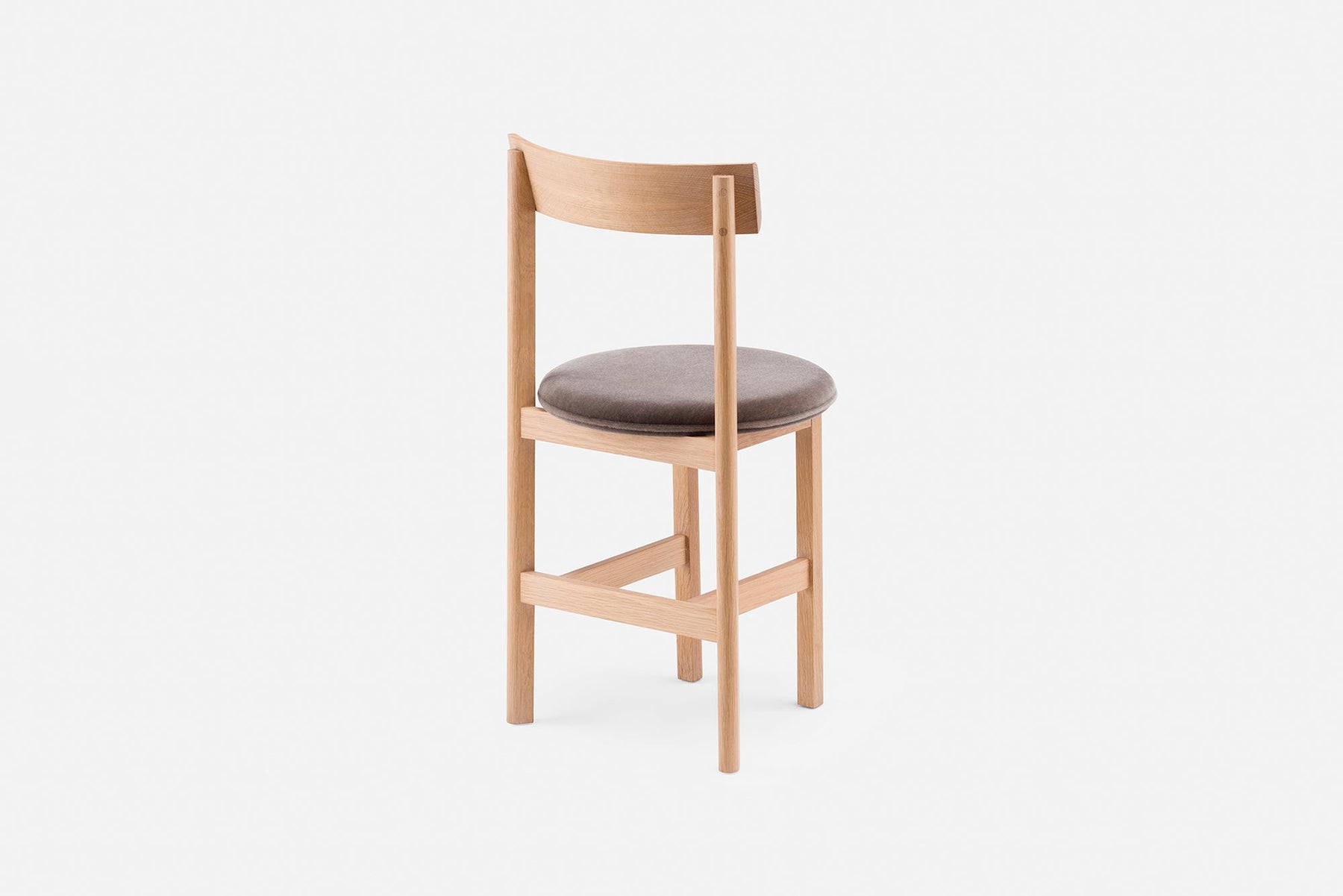 Petit, a compact dining chair in solid wood with an upholstered seat, was specially designed by Neri&Hu as part of their interior design for Papi restaurant, Paris. The chair, available with 3 or 4 legs, addresses the needs of smaller spaces or making room for more guests around a table.